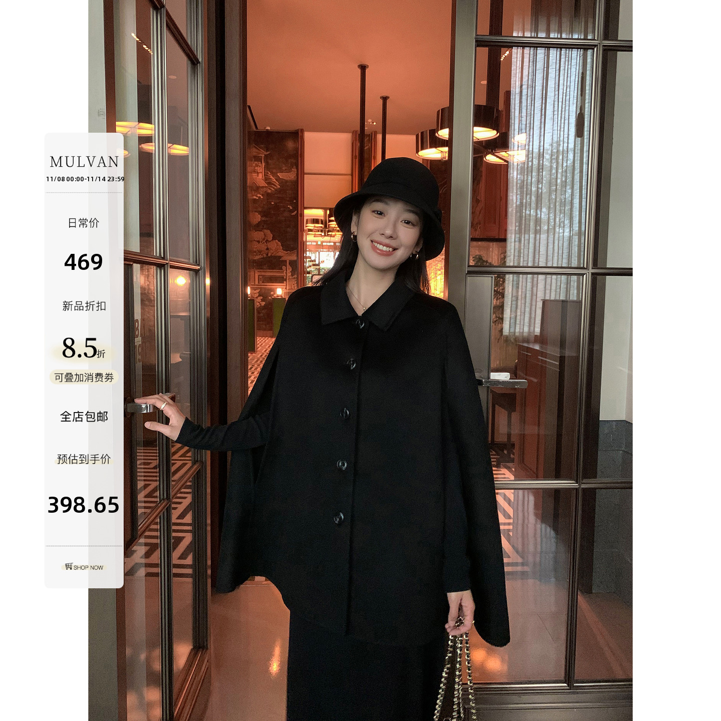 MULVAN 财阀千金 100%羊毛双面呢斗篷外套女高级感气质披肩大衣
