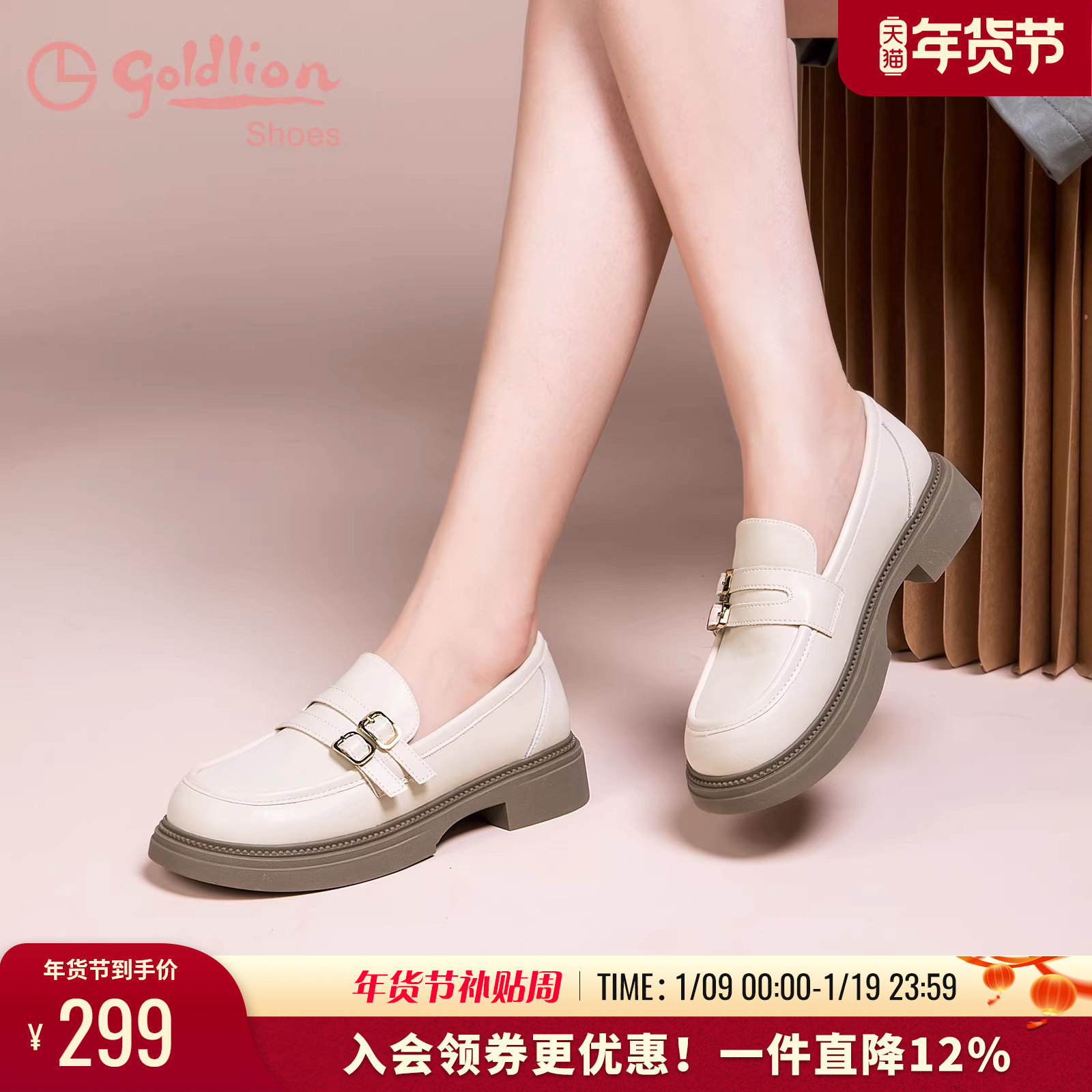 金利来粗跟小皮鞋女英伦春秋女鞋学院风显脚小百搭平底法式乐福鞋