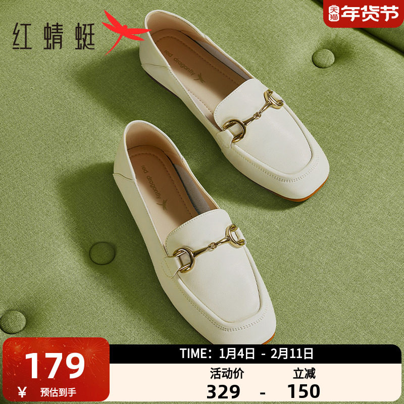 红蜻蜓春秋女鞋新款休闲英伦皮鞋一脚蹬懒人乐福鞋女真皮通勤单鞋