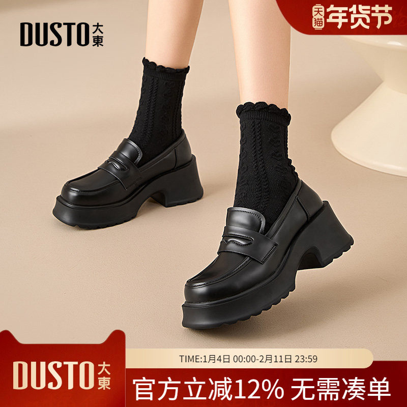 大东dd乐福鞋女2025年春秋女鞋英伦风黑色单鞋子女哑光复古小皮鞋
