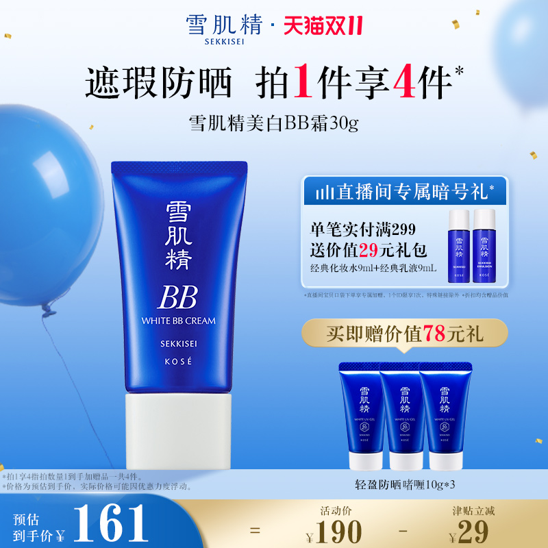 日本雪肌精美白BB霜30g粉底防晒遮瑕提亮隔离妆前打底可拍新款