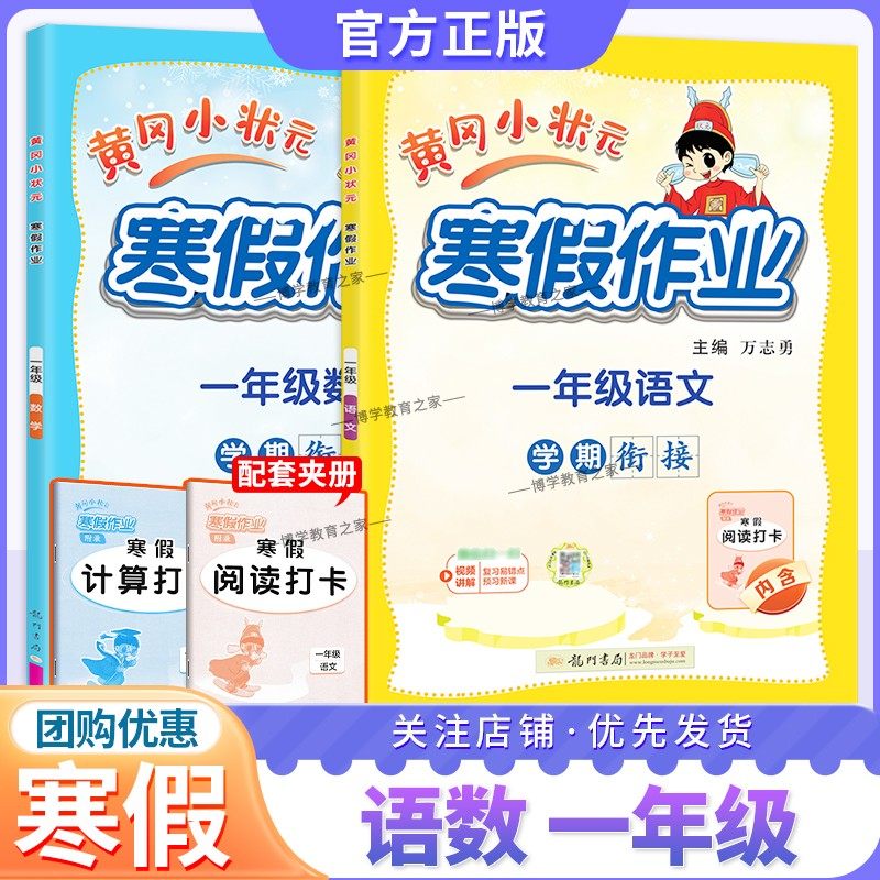 龙门书局黄冈小状元寒假作业一年级语文数学套装1年级上册下册衔接通用版学期衔接寒假一年级寒假作业人教版寒假作业一年级练习册