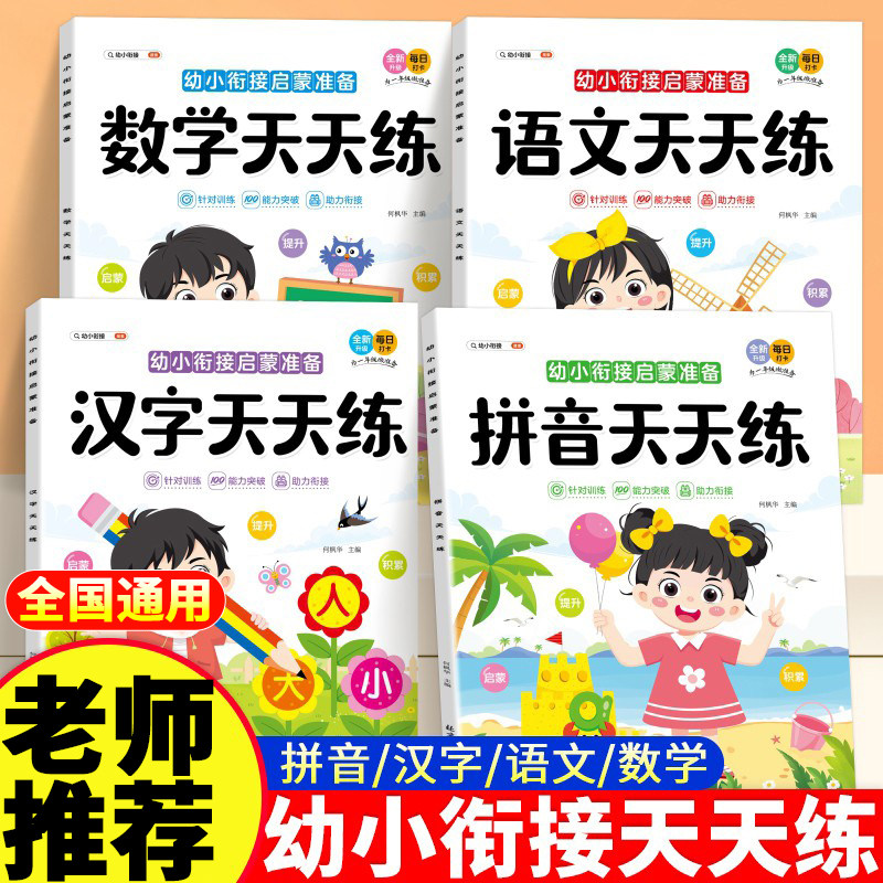 幼小衔接教材全套一日一练人教版拼音汉字语文专用教材寒假作业大班中班口算幼儿园启蒙早教书天天练学前班升一年级入学准备练习册