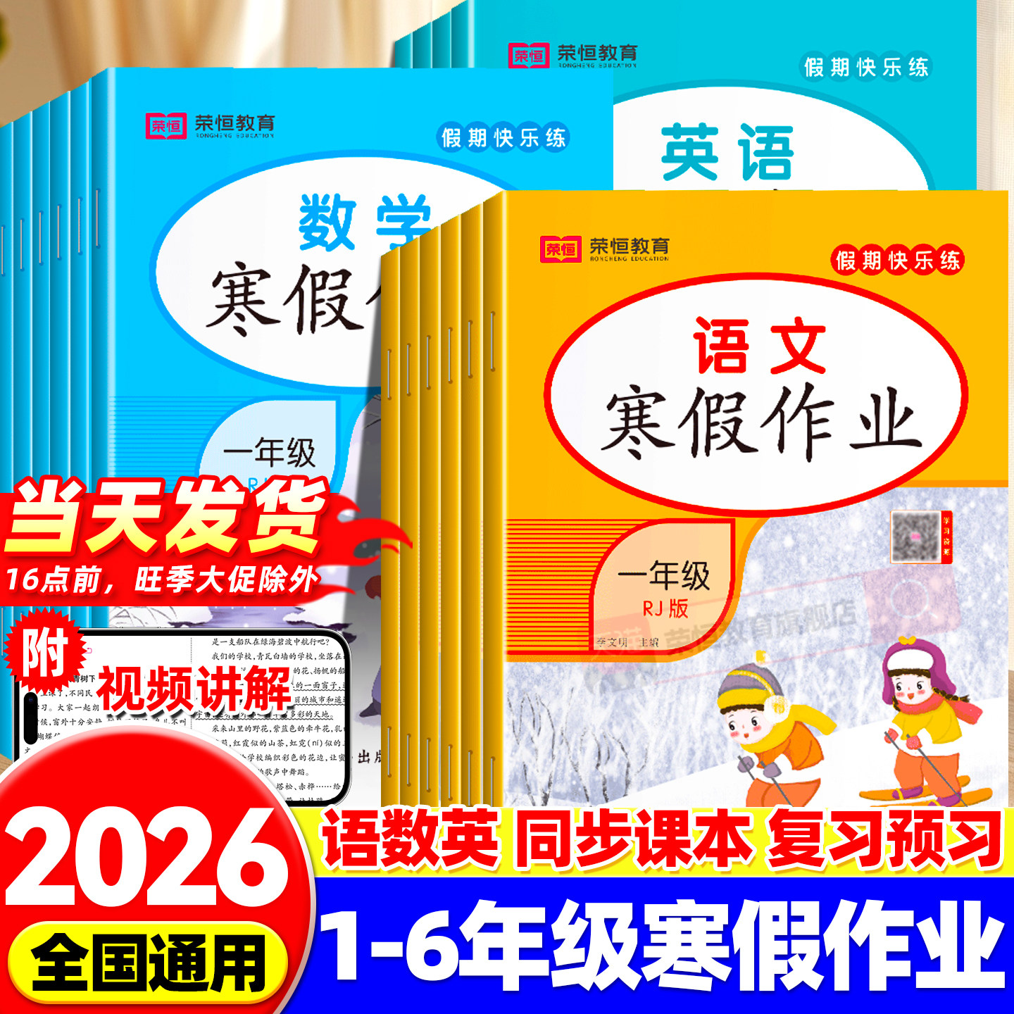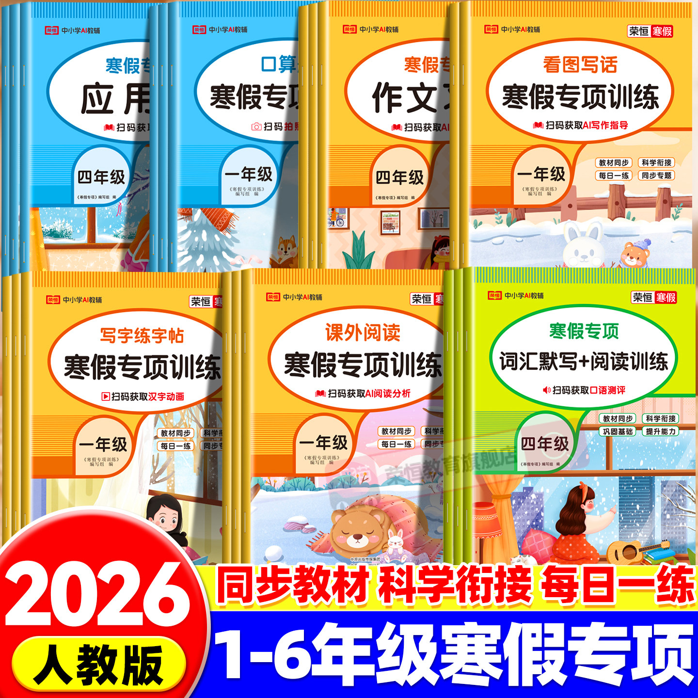 2026新荣恒寒假作业一年级二三四五六年级上册衔接下册语文数学英语寒假一本通预习复习同步练习册人教部编预习复习资料假期快乐练