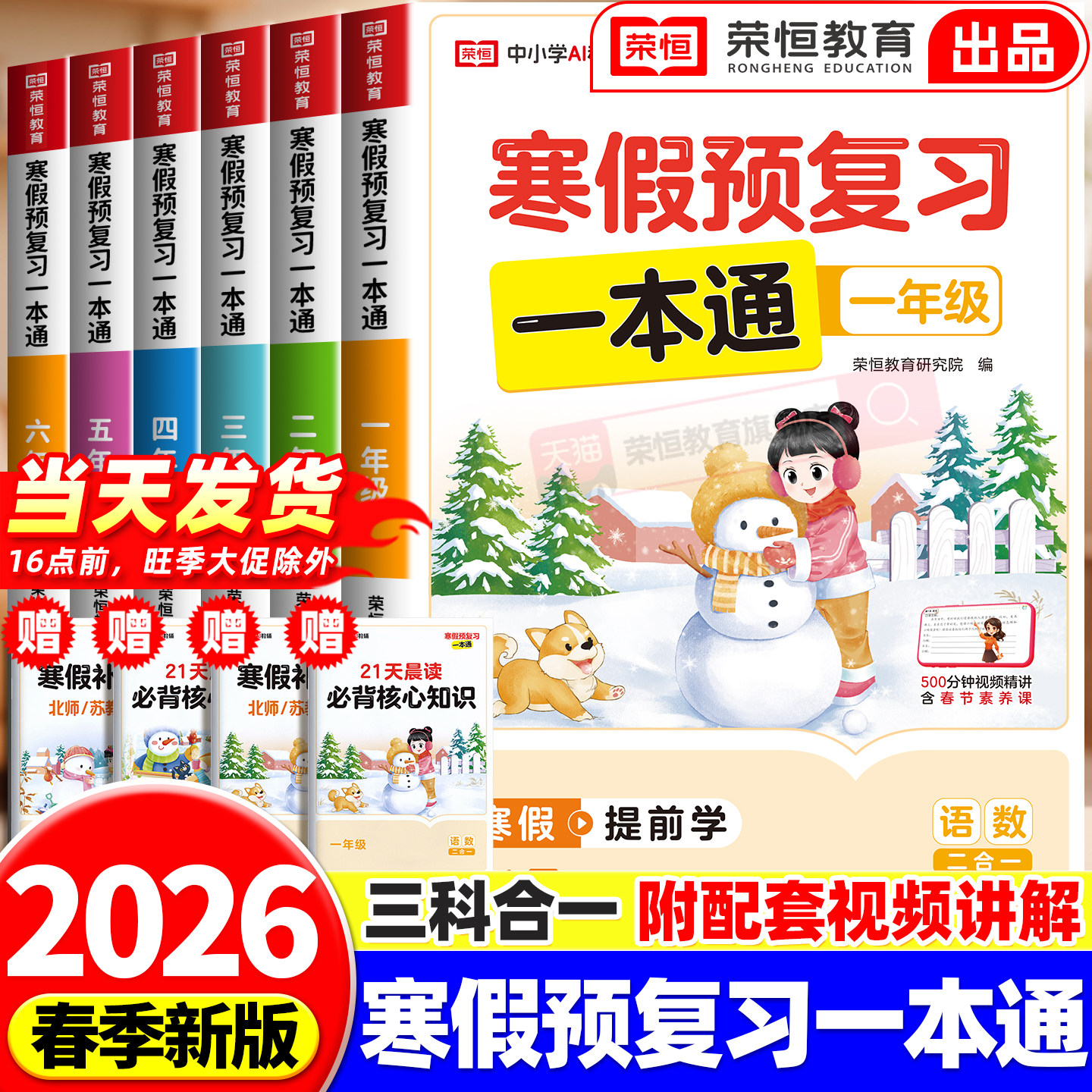 荣恒寒假预复习一本通寒假作业一年级二年级上册三年级四五六年级语文数学英语21天寒假衔接规划计划人教版苏教版寒假阅读同步训练
