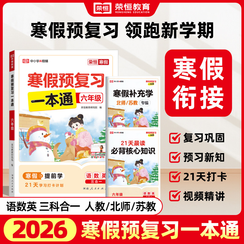 荣恒寒假预复习一本通寒假作业一年级二年级三年级四五六年级语文数学英语21天寒假衔接打卡规划计划人教版苏教版寒假阅读同步训练