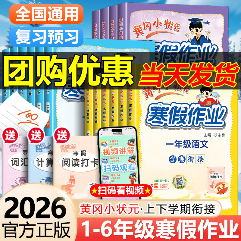 2026春黄冈小状元寒假作业一年级二年级三四五六年级上册语文数学英语人教同步练习预复习寒假衔接下册学期复习预习一本通