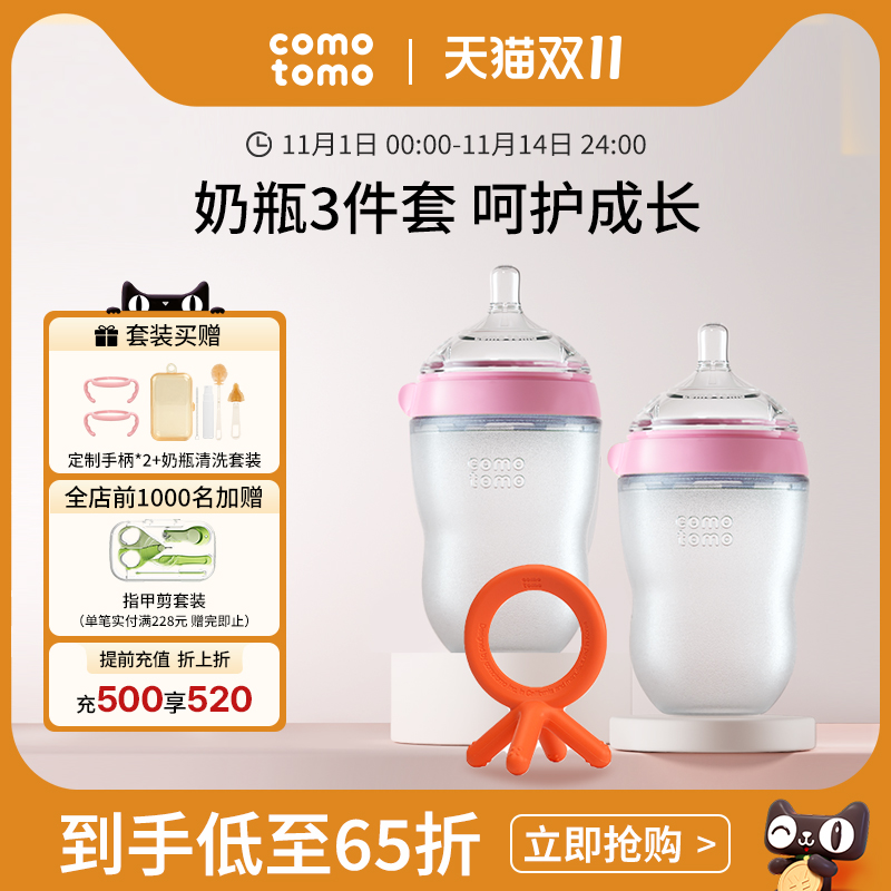 可么多么奶瓶comotomo官方正品新生婴儿硅胶仿母乳宽口防胀气奶嘴