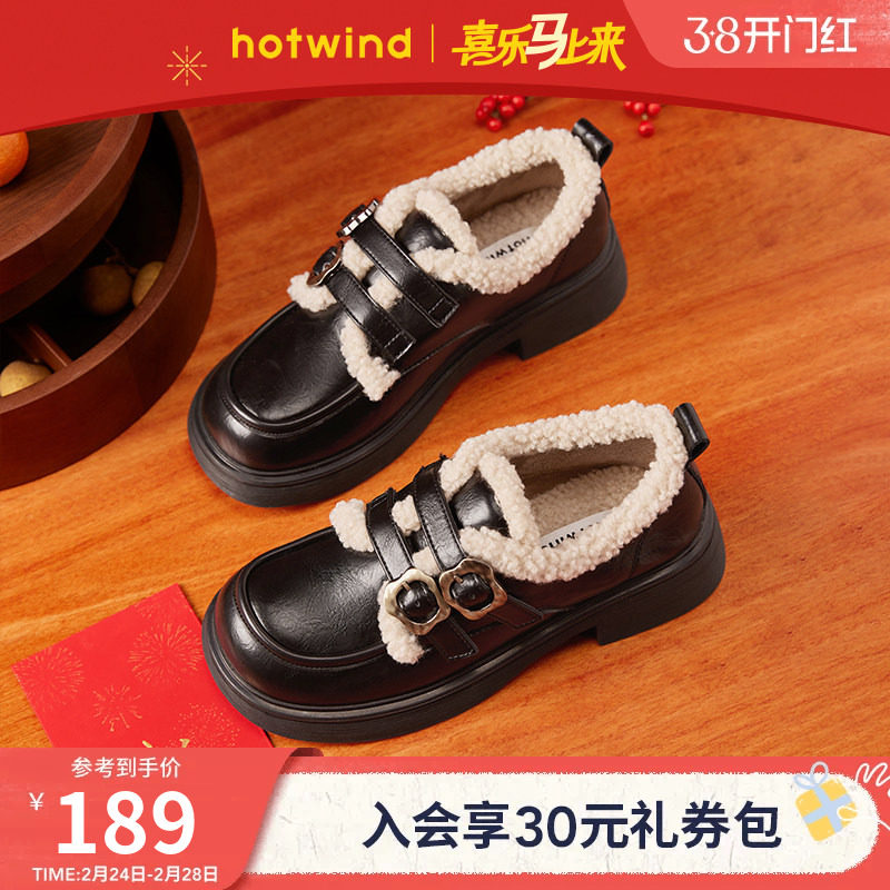 热风加绒乐福鞋女2025年冬季新款黑色小皮鞋棉鞋英伦风毛毛鞋女鞋