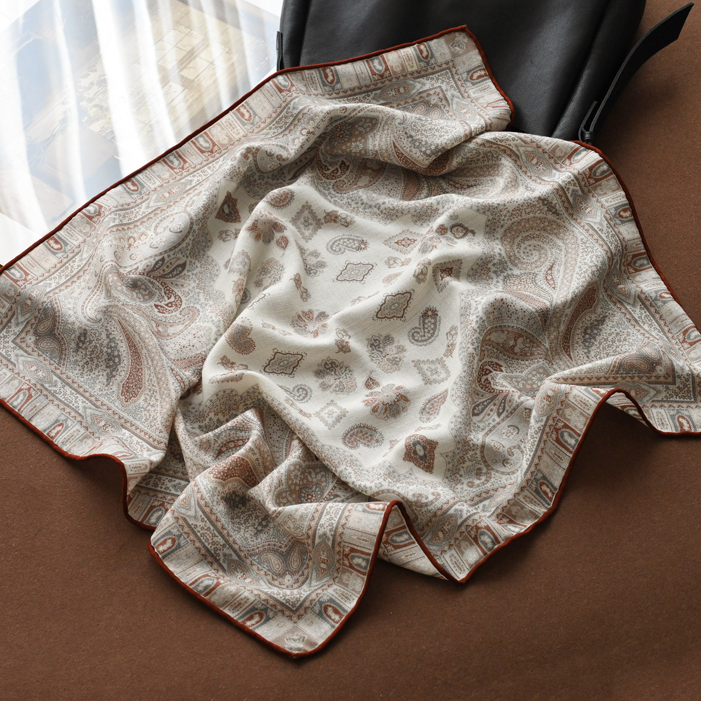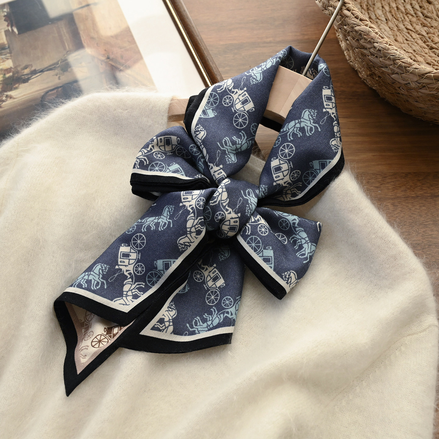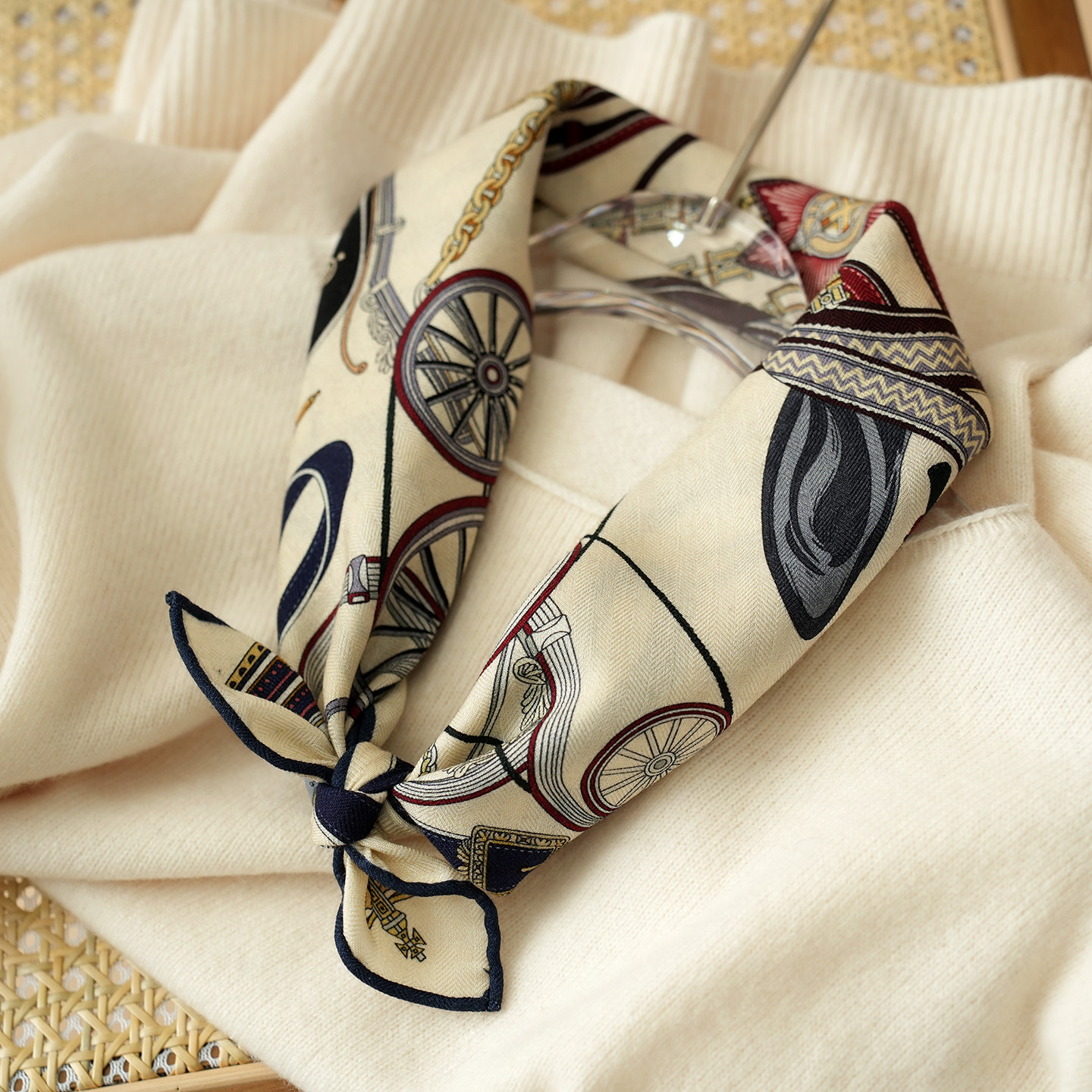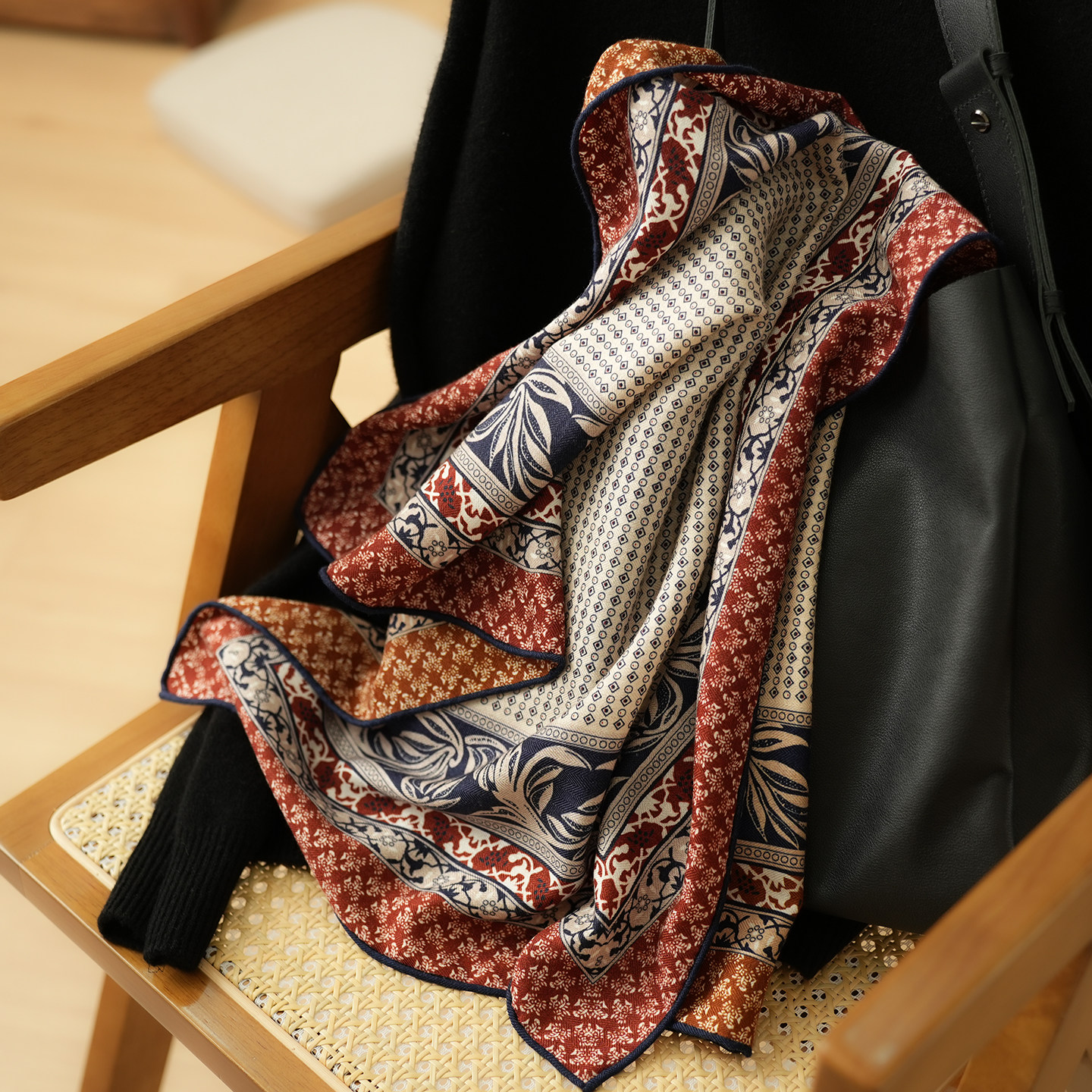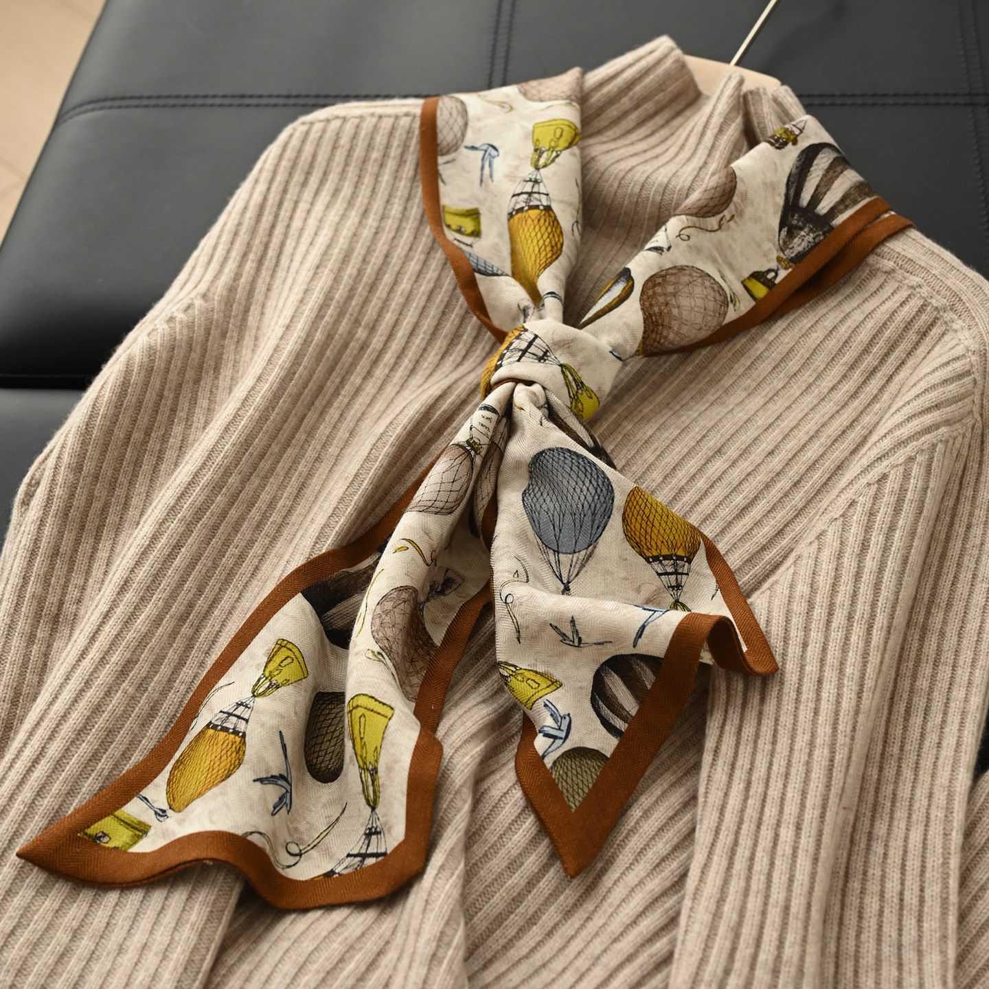 羊毛真丝方巾热气球丝巾典雅风围巾气质感多功能装饰领巾新款百搭