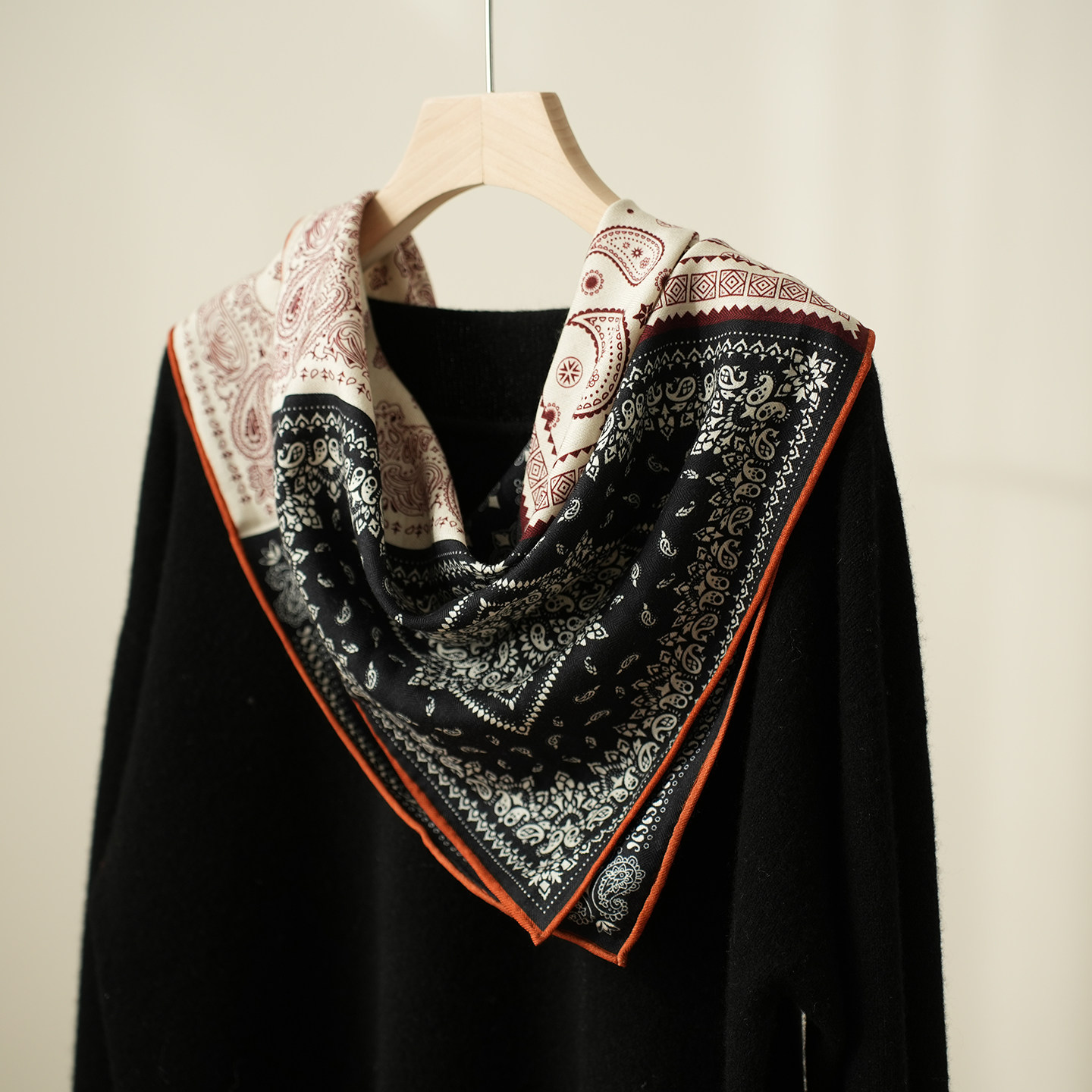 佩斯利的红笺 丝毛菱形巾桑蚕丝羊毛围巾复古红丝巾春秋百搭领巾