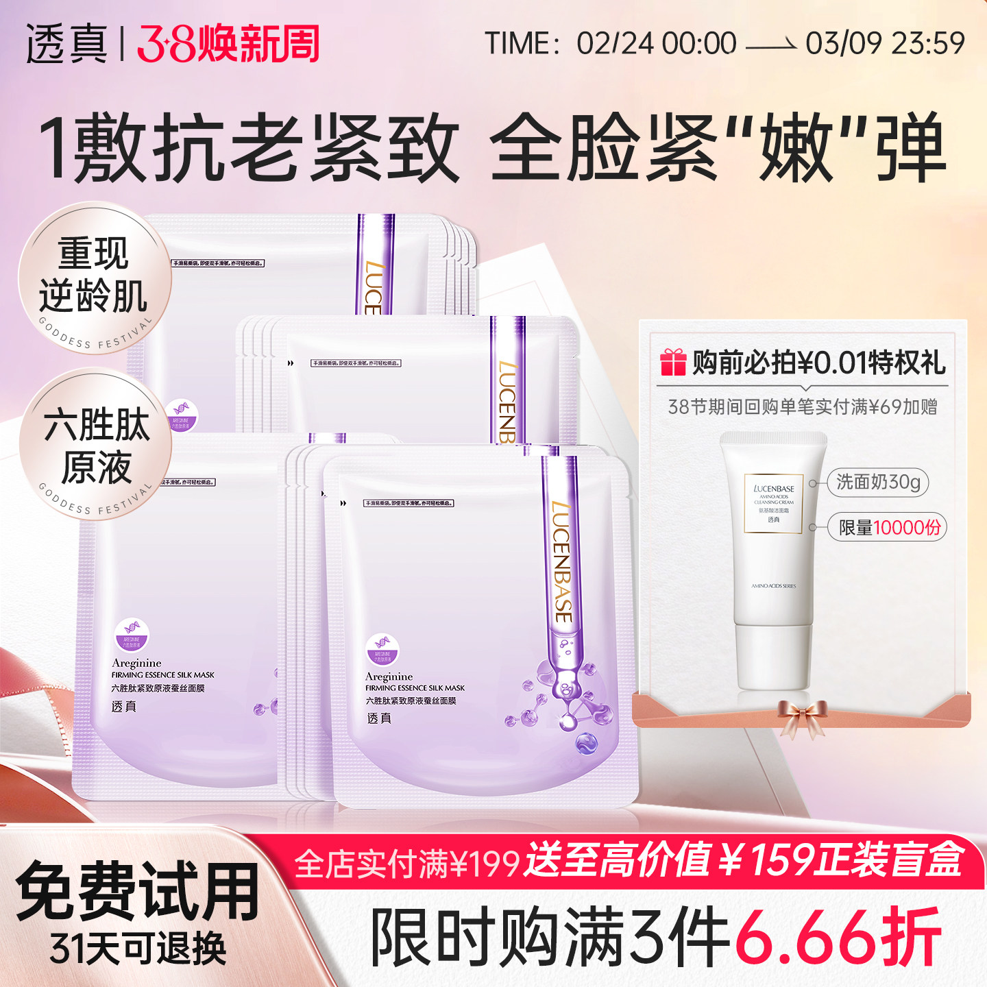 透真六胜肽面膜秋冬补水保湿抗皱紧致抗衰老女男士专用官方旗舰店