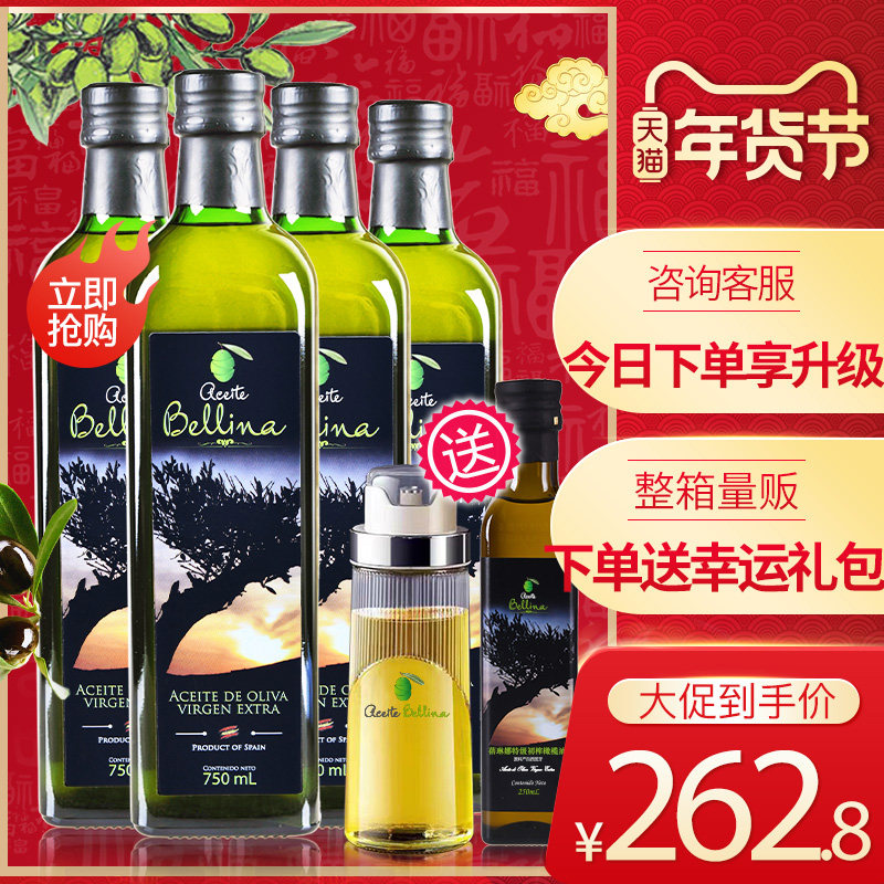 蓓琳娜正品西班牙原装进口特级初榨橄榄油750ml*4整箱炒菜食用油