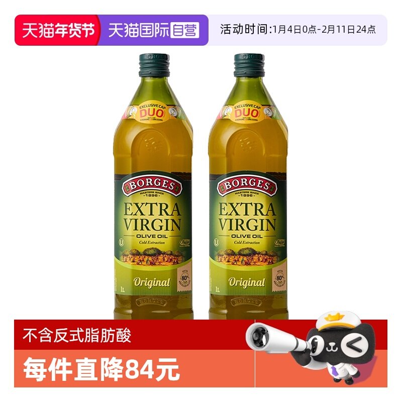 【自营】BORGES伯爵西班牙原装进口特级初榨橄榄油食用油1L *2瓶