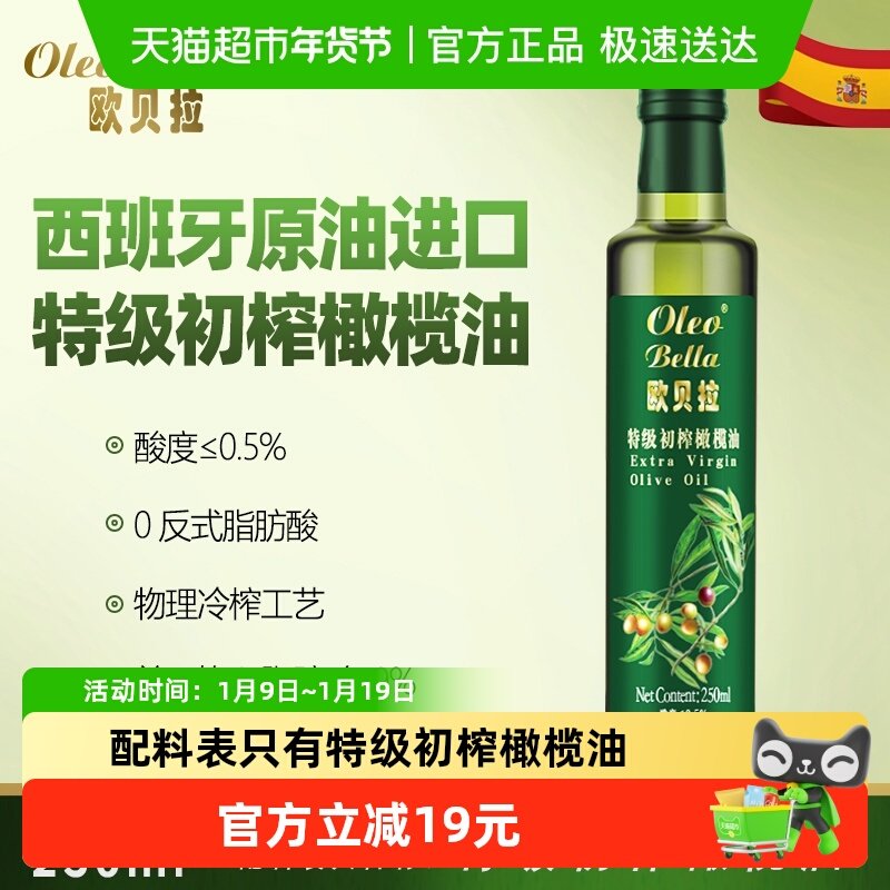 蓓琳娜欧洲原油进口100%特级初榨纯橄榄油食用250ml健康轻食炒菜