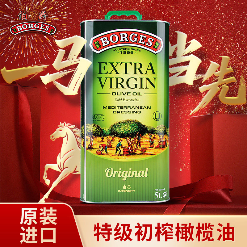 西班牙伯爵Borges进口特级初榨橄榄油5L 食用油5升家庭装烹饪