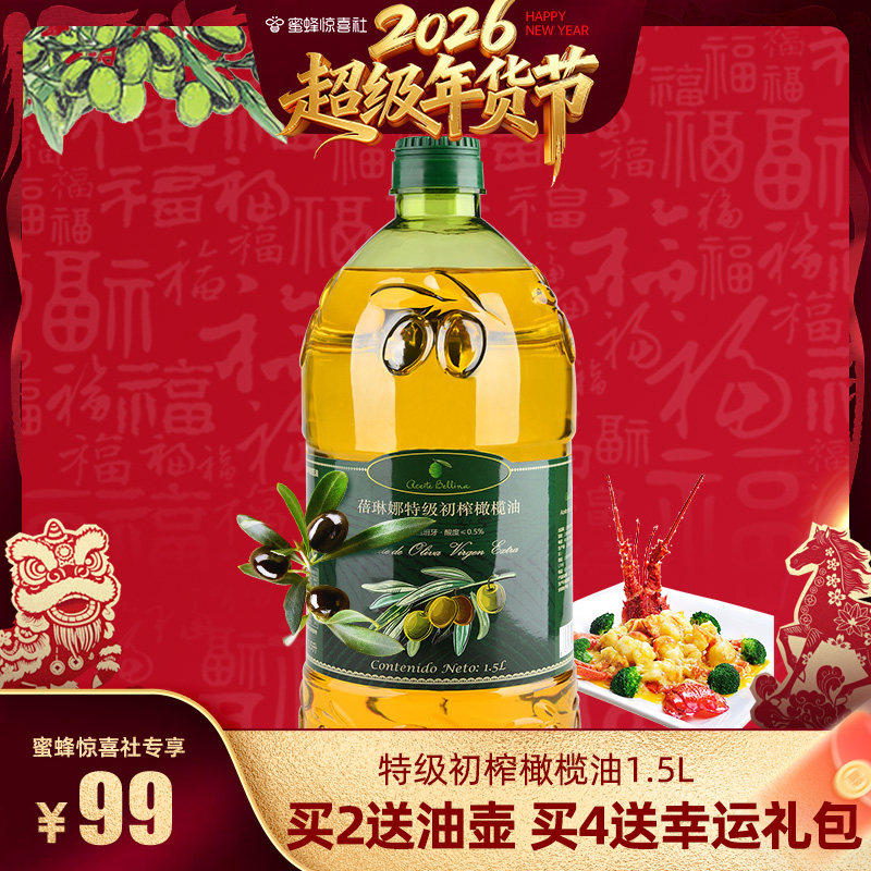 【超级年货节】买2送油壶买4送礼包蓓琳娜进口特级初榨橄榄油1.5L