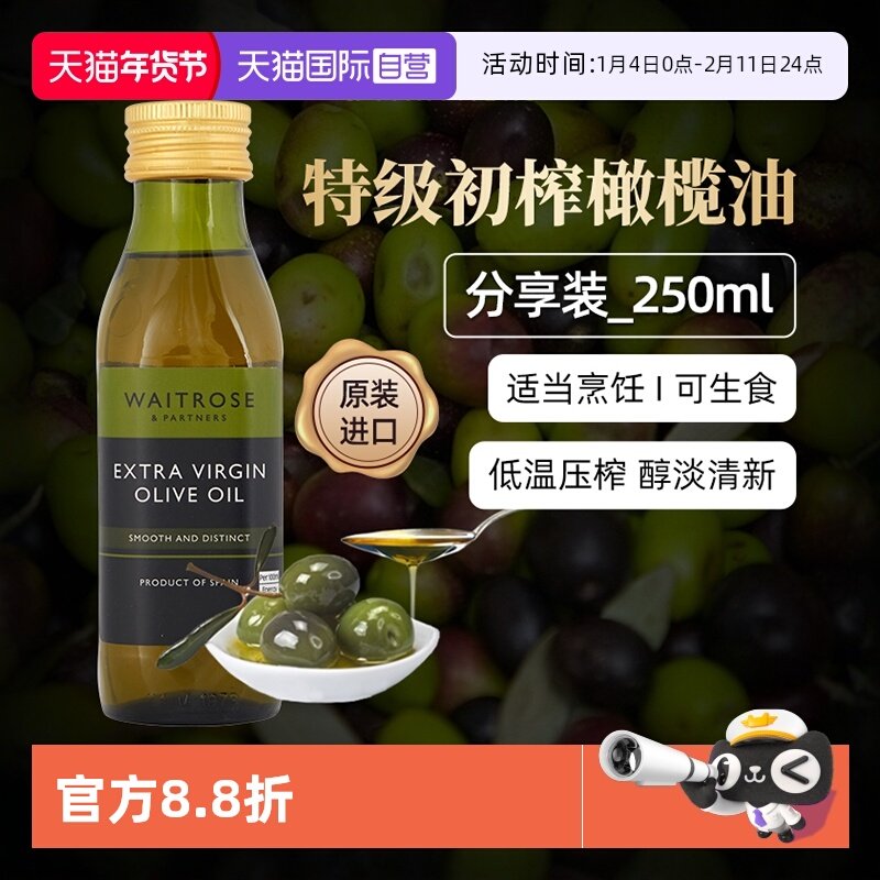 【自营】Waitrose进口特级初榨橄榄油250ml小瓶家庭烘焙食用油