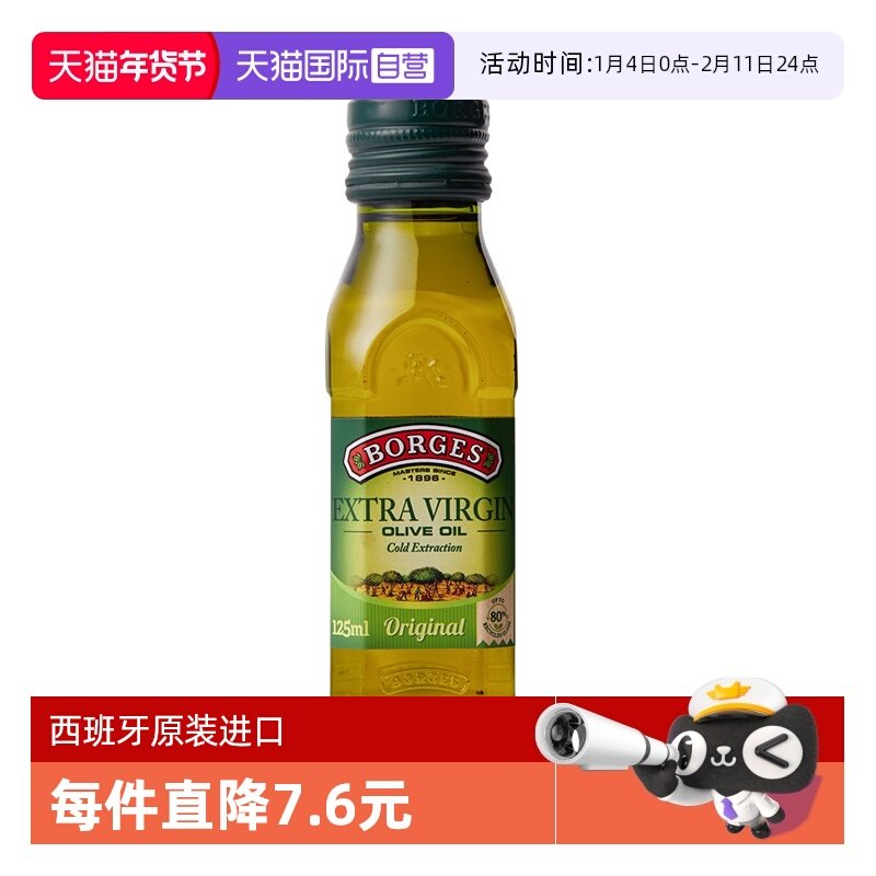 【自营】Borges伯爵西班牙进口特级初榨橄榄油食用油125ml尝鲜装