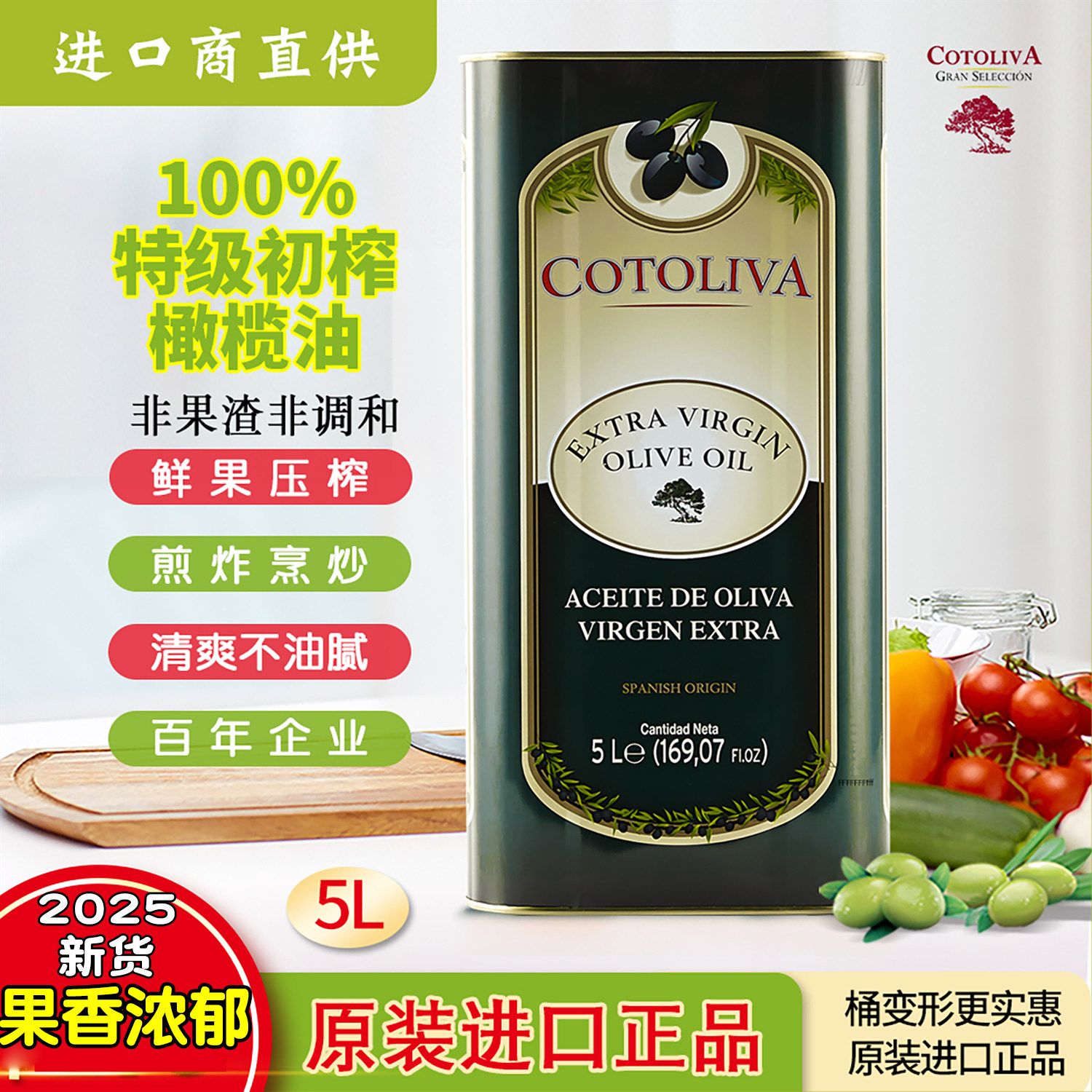 西班牙进口原油5L油橄榄含特级初榨食用油官方正品低脂家用冷榨