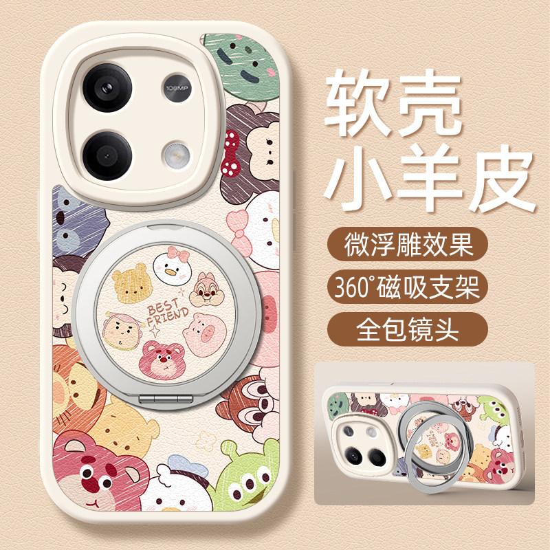 萌宠派对适用红米note14手机壳note15/13pro+小羊皮12小米redmi11Tpro新款turbo3/10/9/8/7卡通可爱支架女款