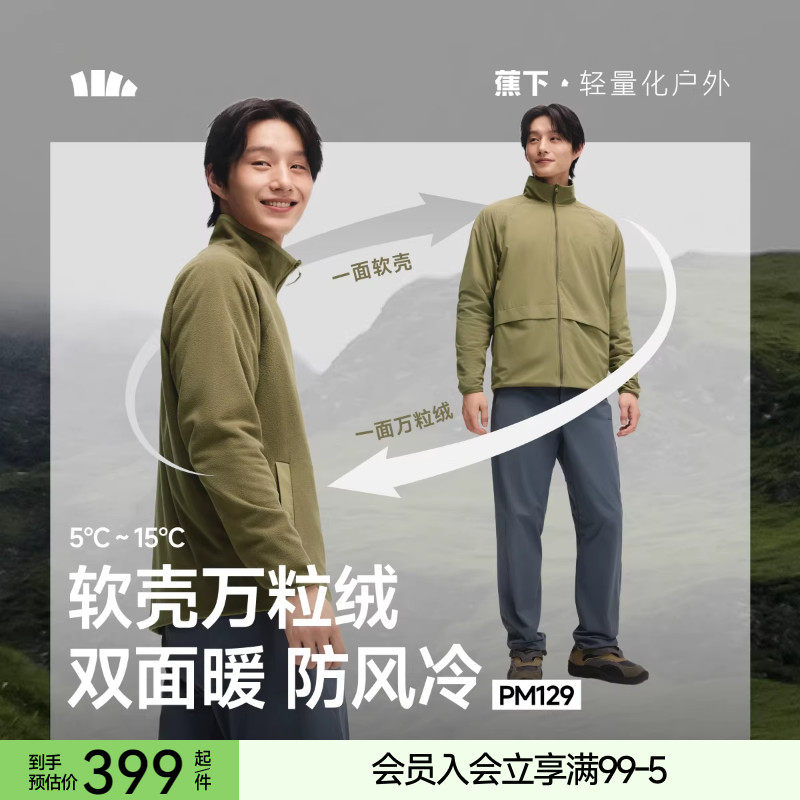 蕉下双面软壳衣男款冲锋外套抓绒衣户外防风保暖防泼水摇粒绒夹克