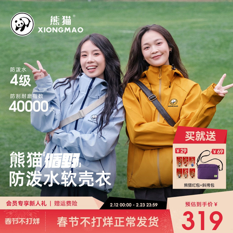 循野熊猫软壳衣女外套女2026新款户外冲锋夹克工装防风衣水登山服