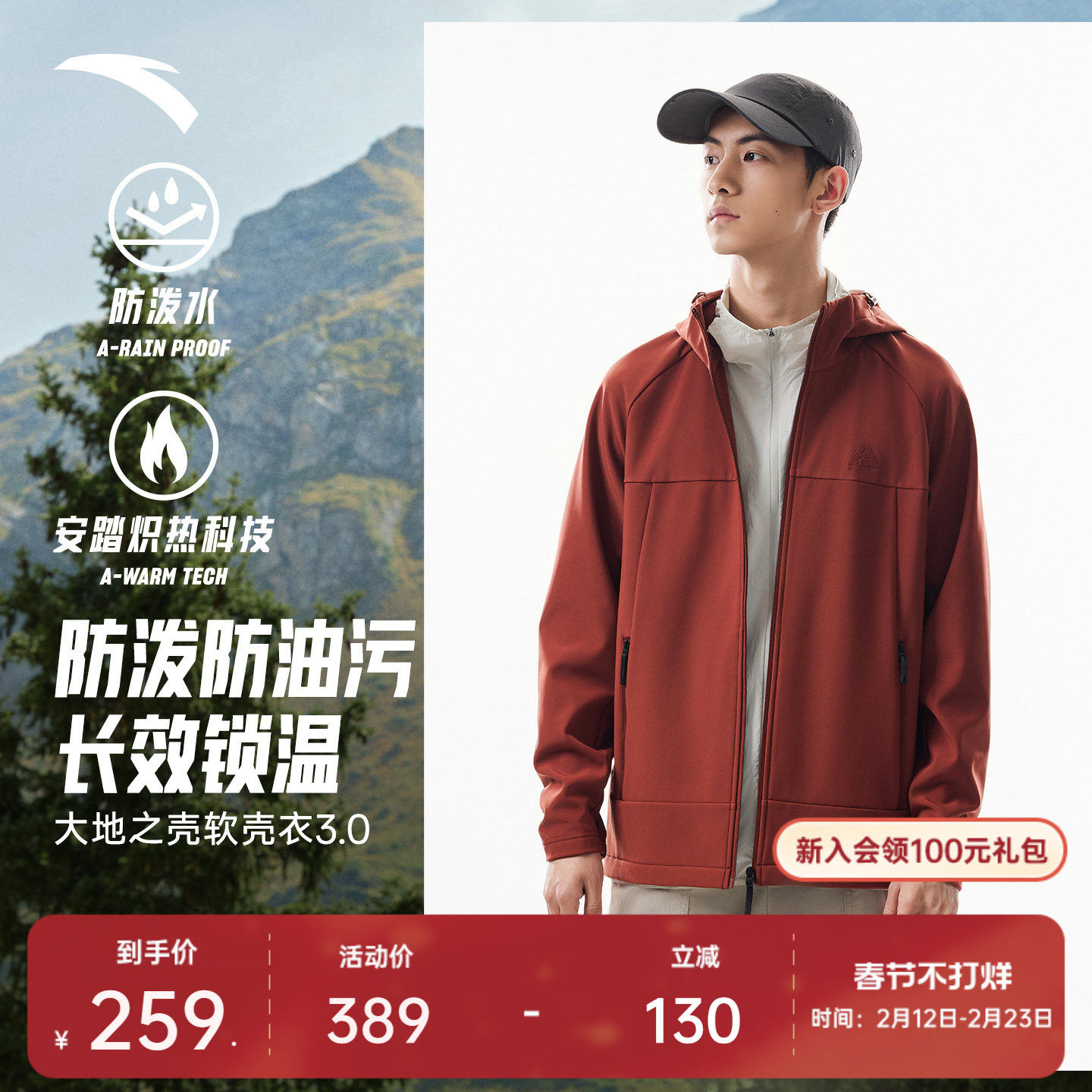 安踏大地之壳3.0软壳衣男款连帽三防加绒户外运动外套防泼水风衣