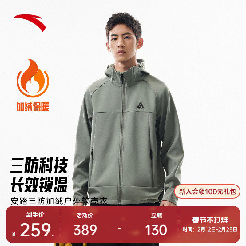 【林孝埈同款】安踏软壳衣丨大地之壳3.0男加绒运动外套三防上衣