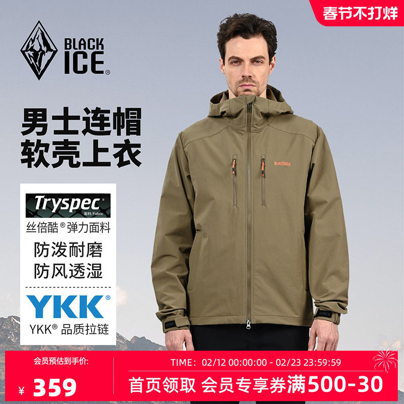 黑冰户外软壳衣男新款防风耐磨保暖立领连帽外套冲锋衣内胆2502