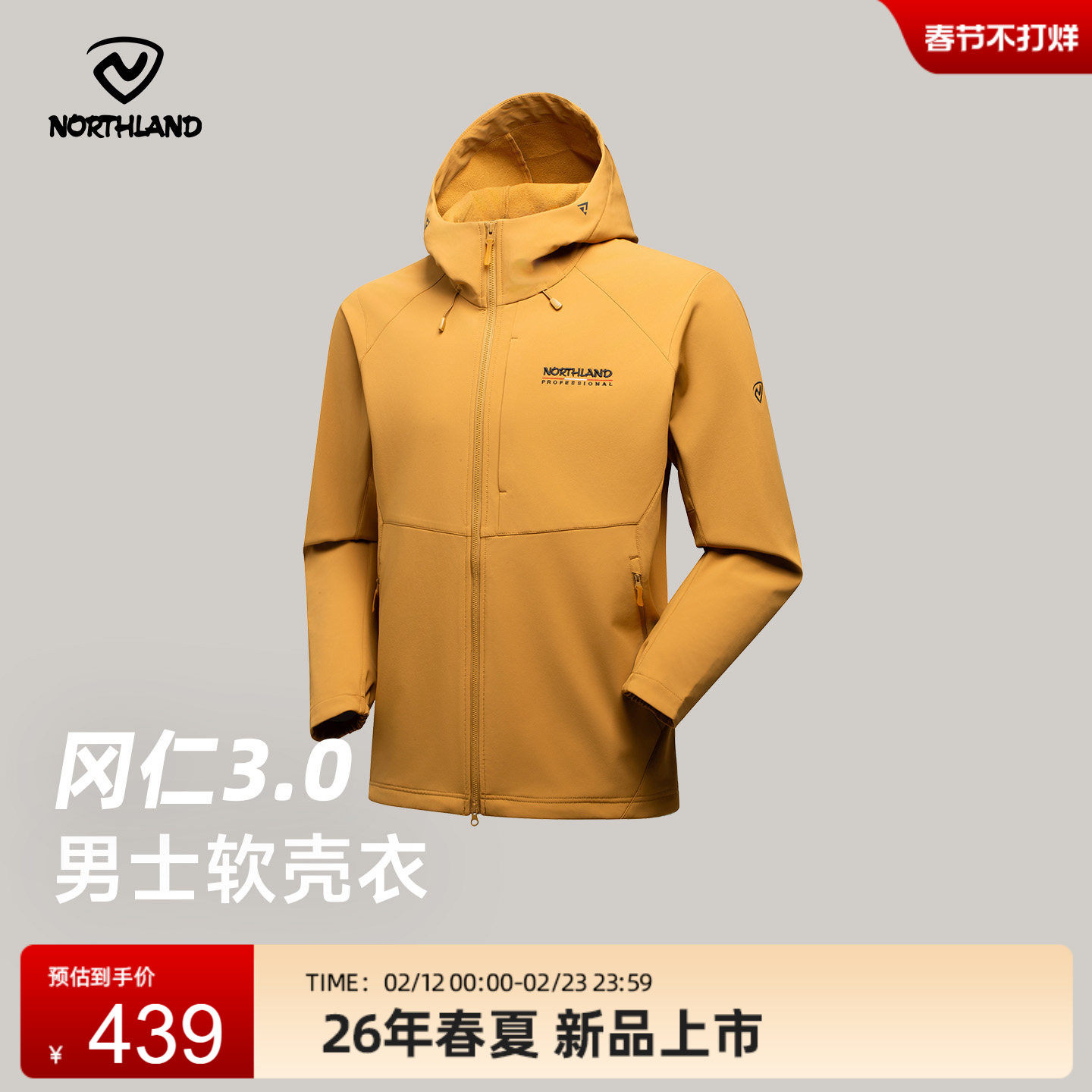 【冈仁3.0】NORTHLAND诺诗兰软壳衣男士弹力耐磨保暖徒步登山上衣