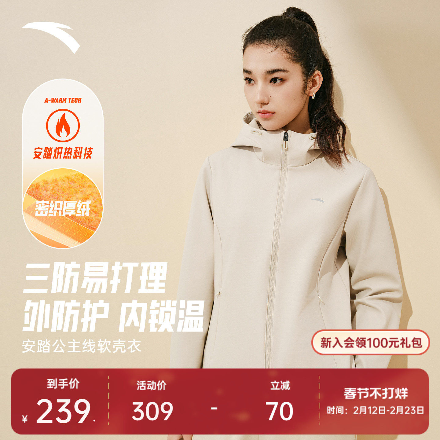 安踏防泼水外套丨长袖夹克女春季户外软壳衣加绒保暖运动风衣上衣
