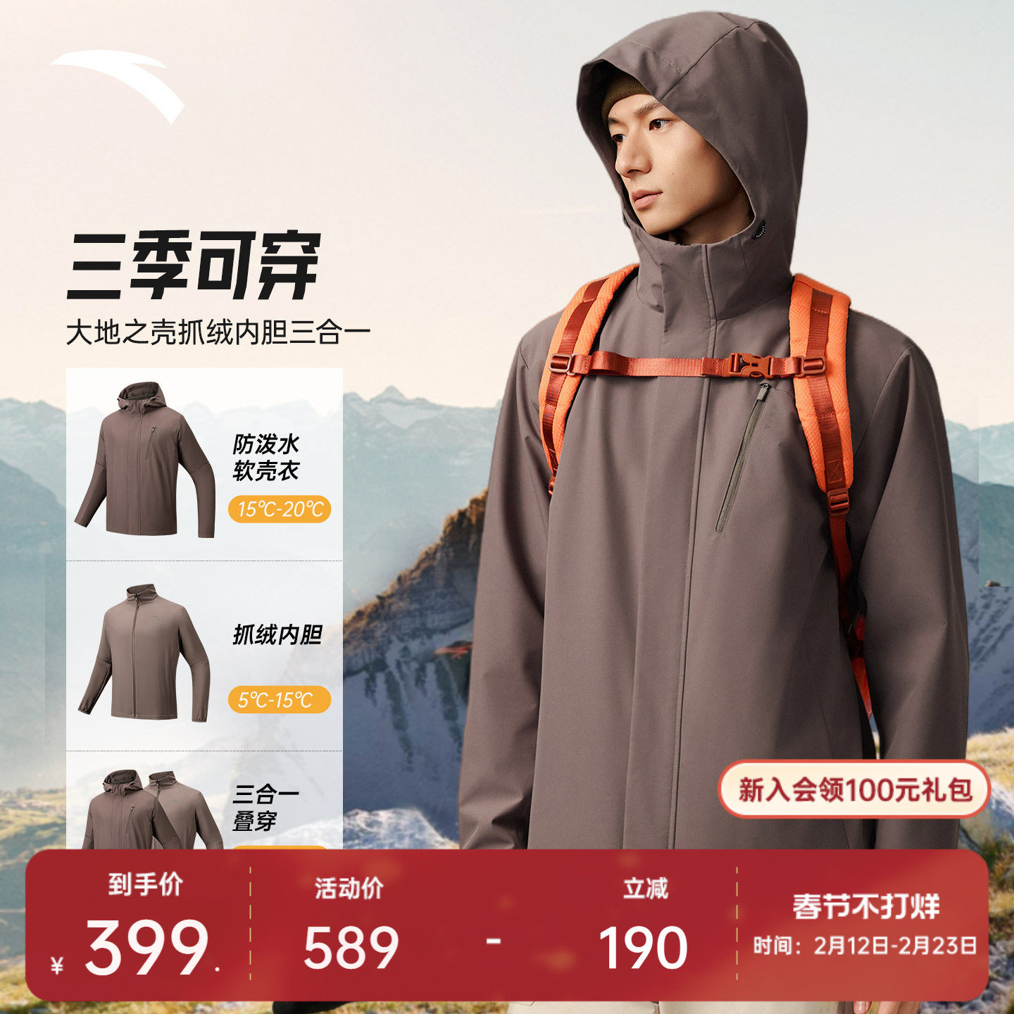 安踏三合一软壳衣丨大地之壳摇粒绒内胆运动外套夹克男士户外上衣