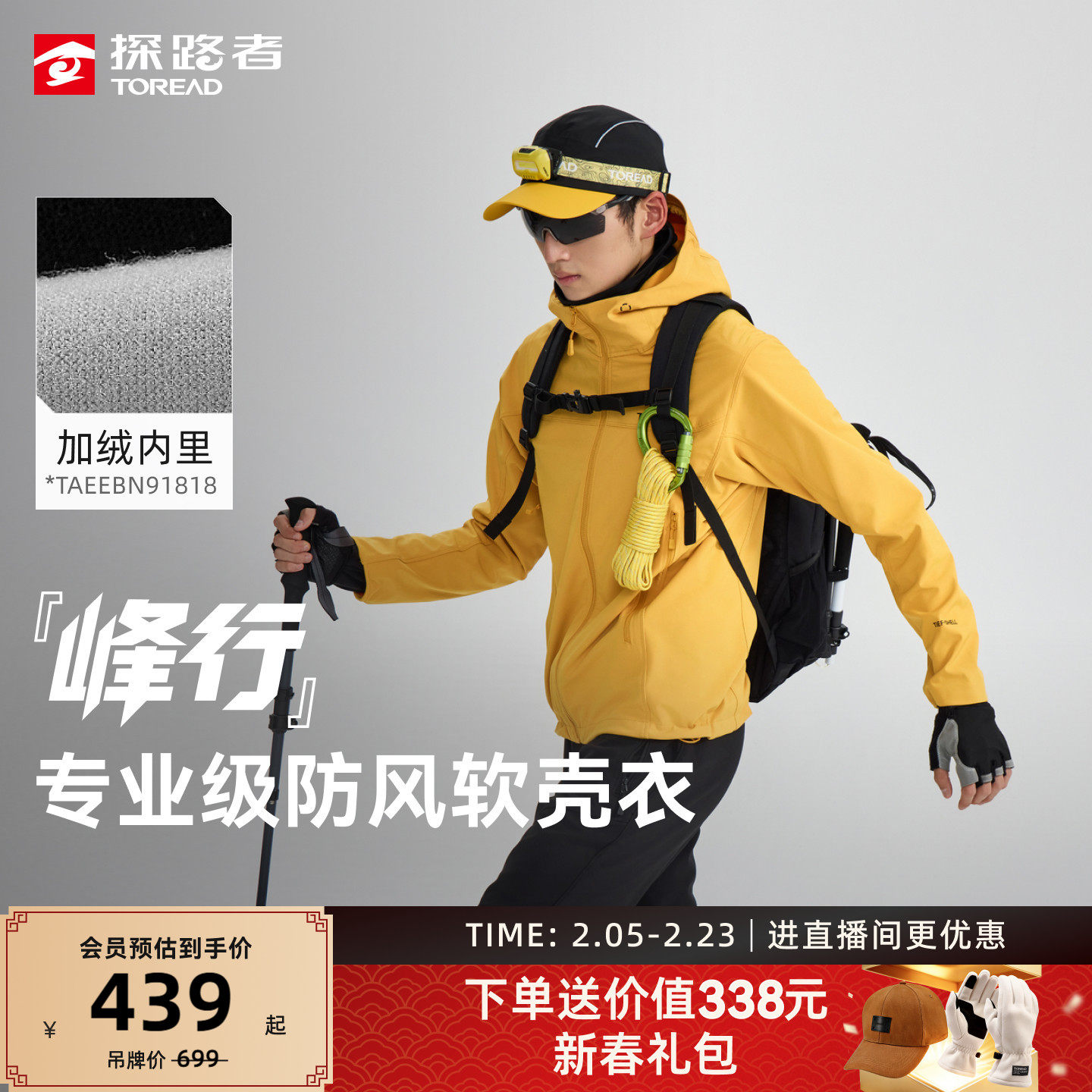 【海豹加绒】拓路者户外软壳衣秋季新款男士连帽防风保暖拉链外套