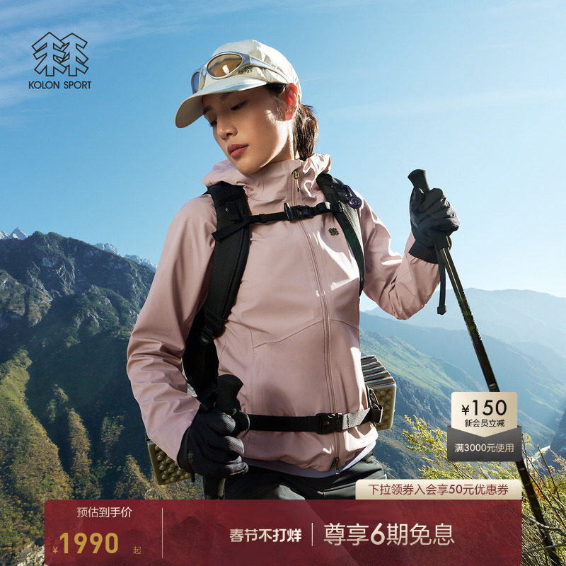 KOLON SPORT可隆软壳衣防风防水透湿徒步男女多口袋连帽软壳夹克