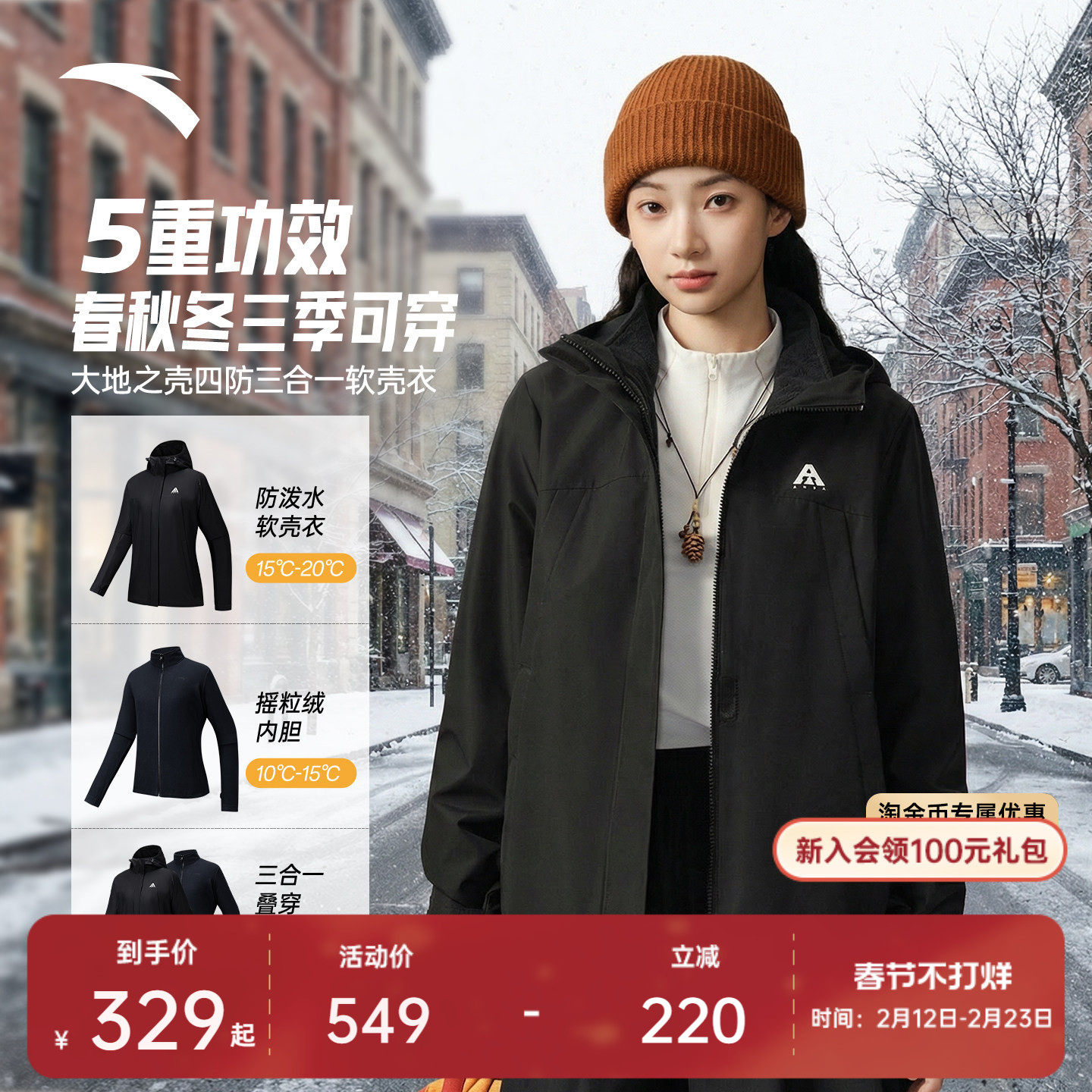 安踏羽绒三合一软壳衣丨大地之壳内胆羽绒服外套女士防泼水两件套