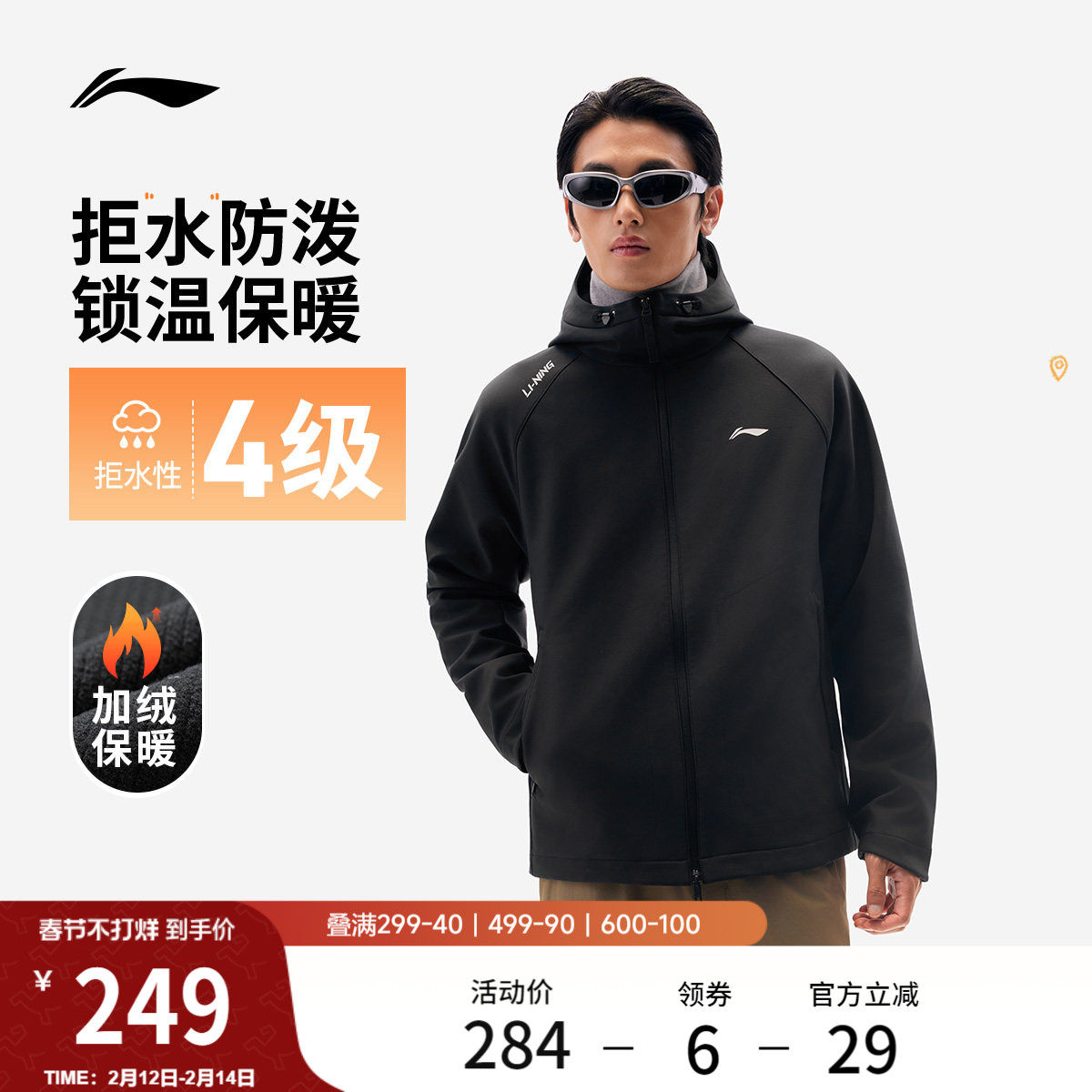 李宁软壳外套男冬季新款跑步夹克上衣保暖户外冲锋加绒厚运动风衣