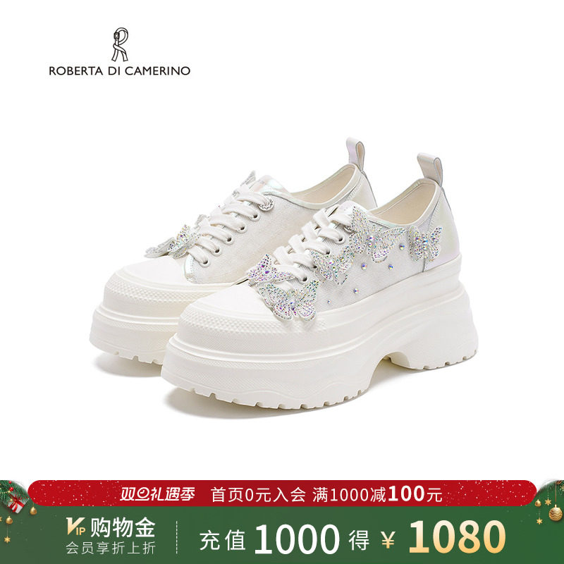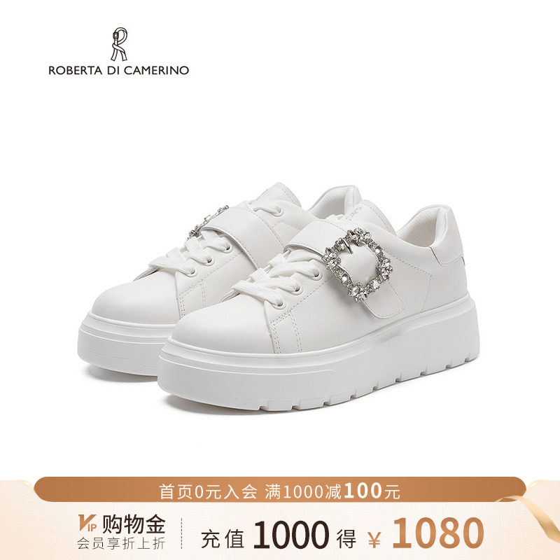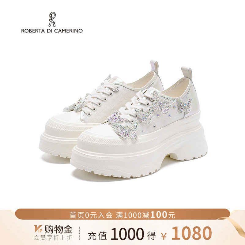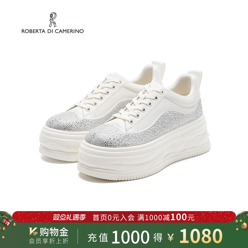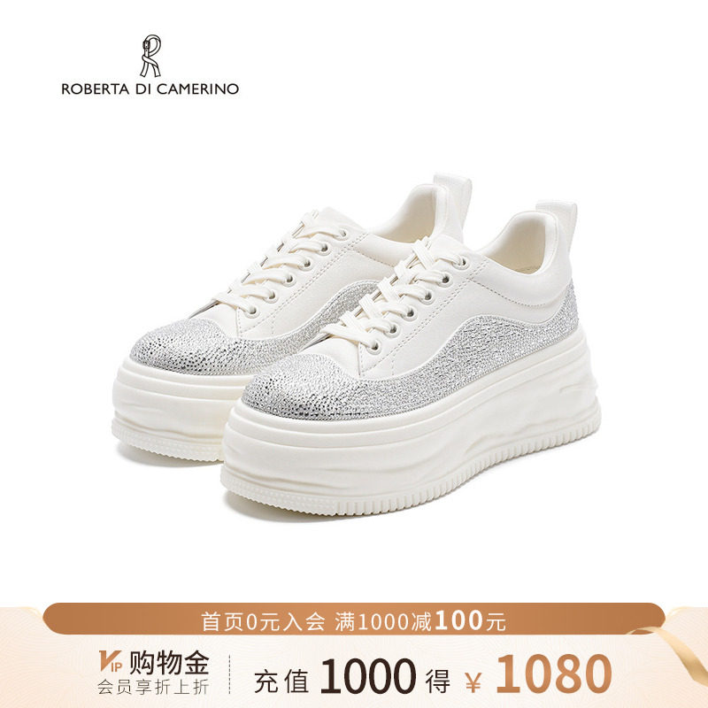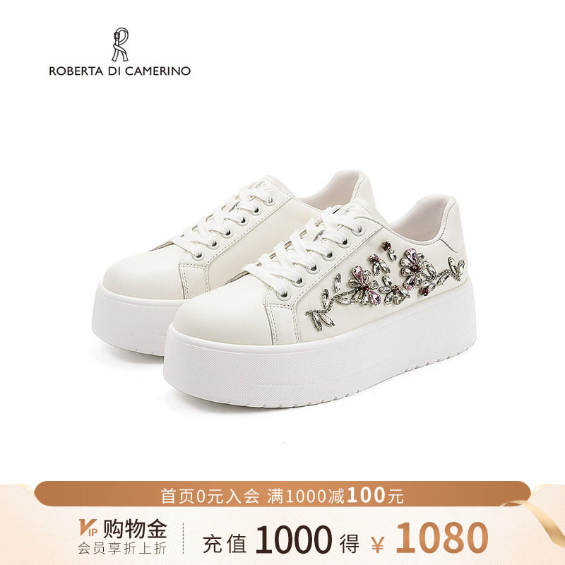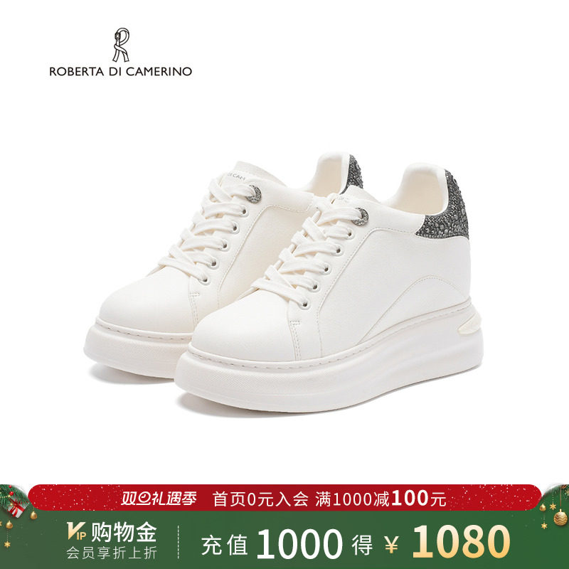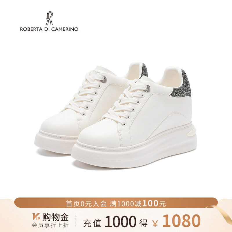 诺贝达新款水钻休闲鞋厚底内增高运动鞋舒适透气小白鞋RCL255502