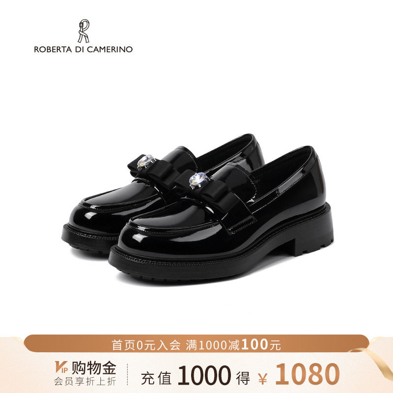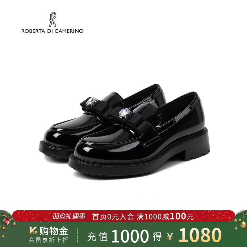 诺贝达秋季新品乐福鞋蝴蝶结水钻小皮鞋舒适一脚蹬女单鞋RS266102