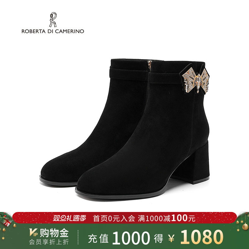 Roberta诺贝达女鞋冬新蝴蝶饰扣舒适粗跟通勤短靴RA247006