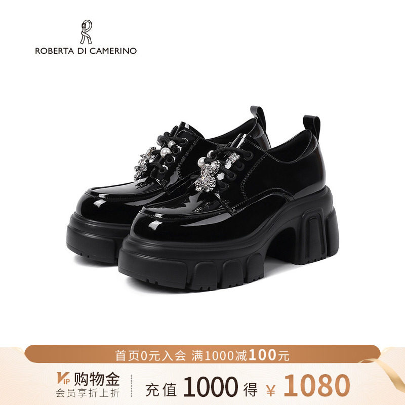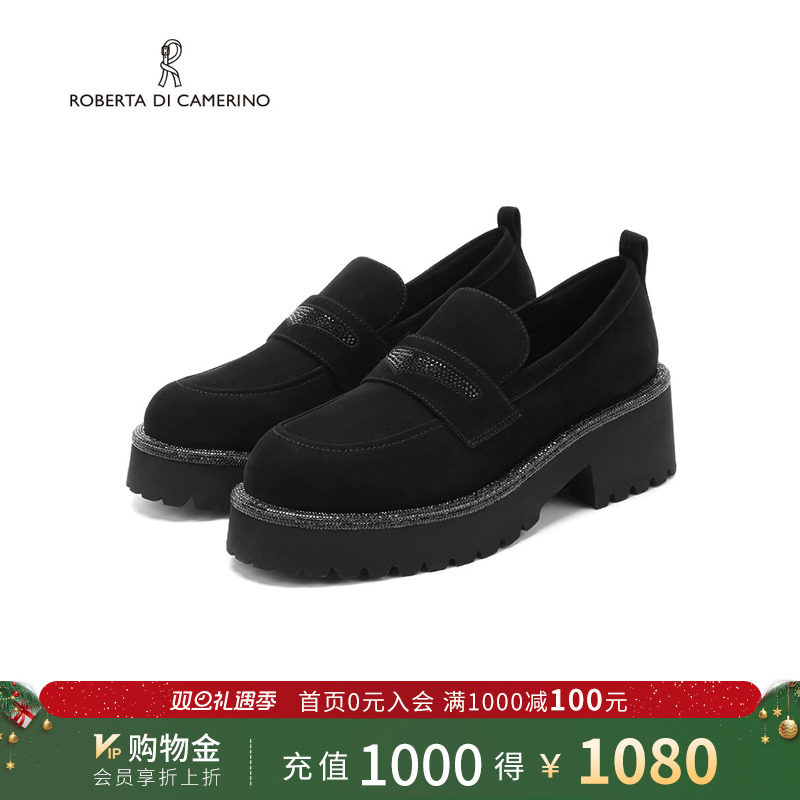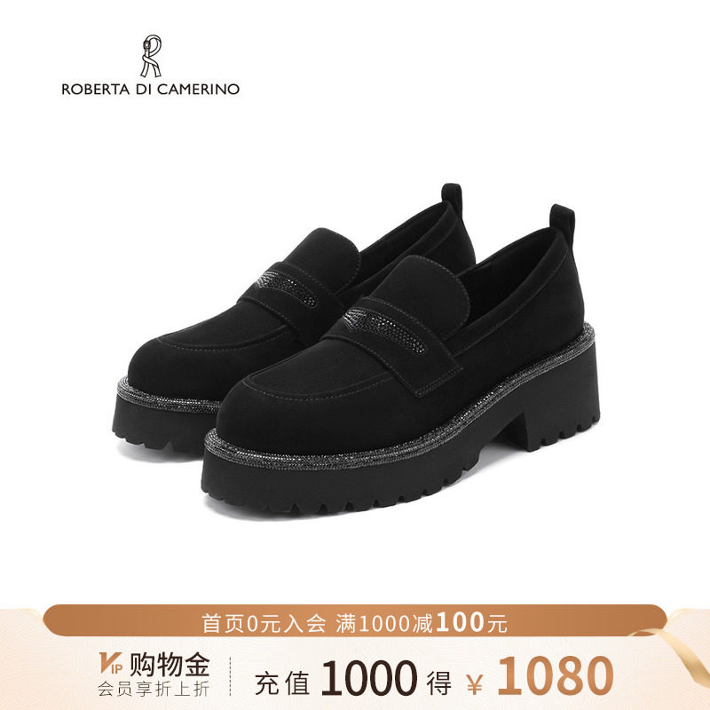 诺贝达秋季新款乐福鞋山茶花厚底水钻扣饰小皮鞋通勤女鞋RS266106