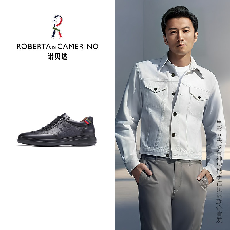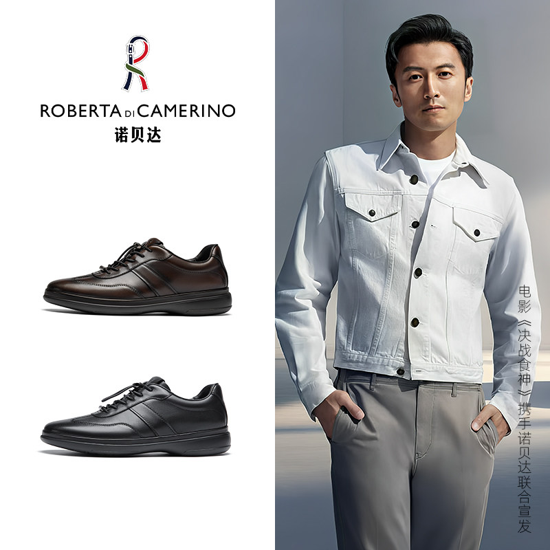 诺贝达男鞋秋冬季男士休闲皮鞋男真皮厚底圆头舒适百搭时尚板鞋潮