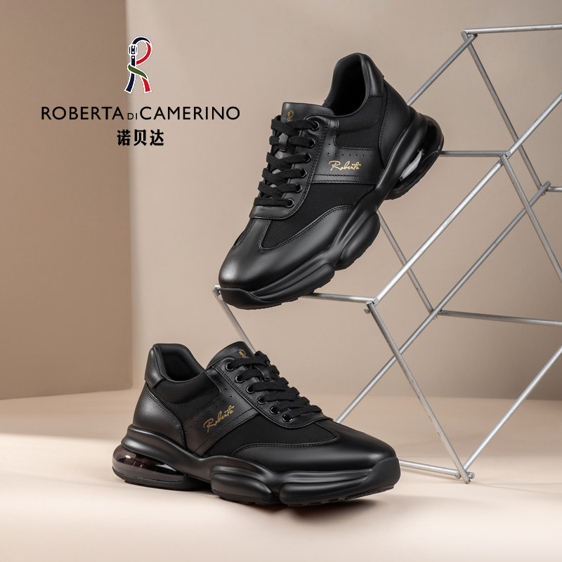 诺贝达新款时尚休闲运动鞋男士真皮厚底增高户外休闲百搭老爹鞋潮