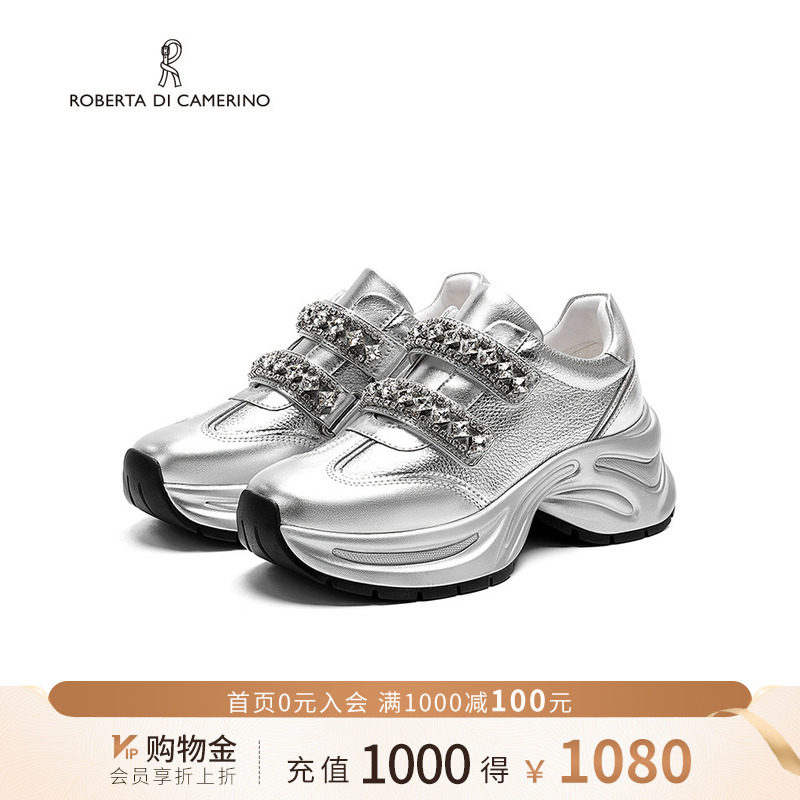 诺贝达2025新款老爹鞋厚底增高水钻女鞋百搭通勤休闲鞋RCA255905