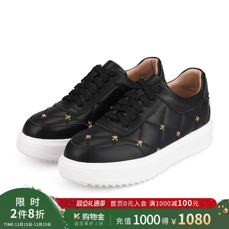 诺贝达女单鞋休闲鞋时尚休闲板鞋运动轻便水钻单鞋RC229212