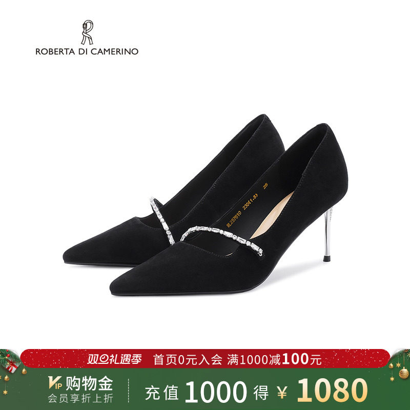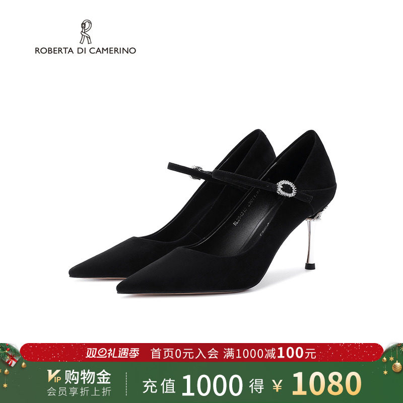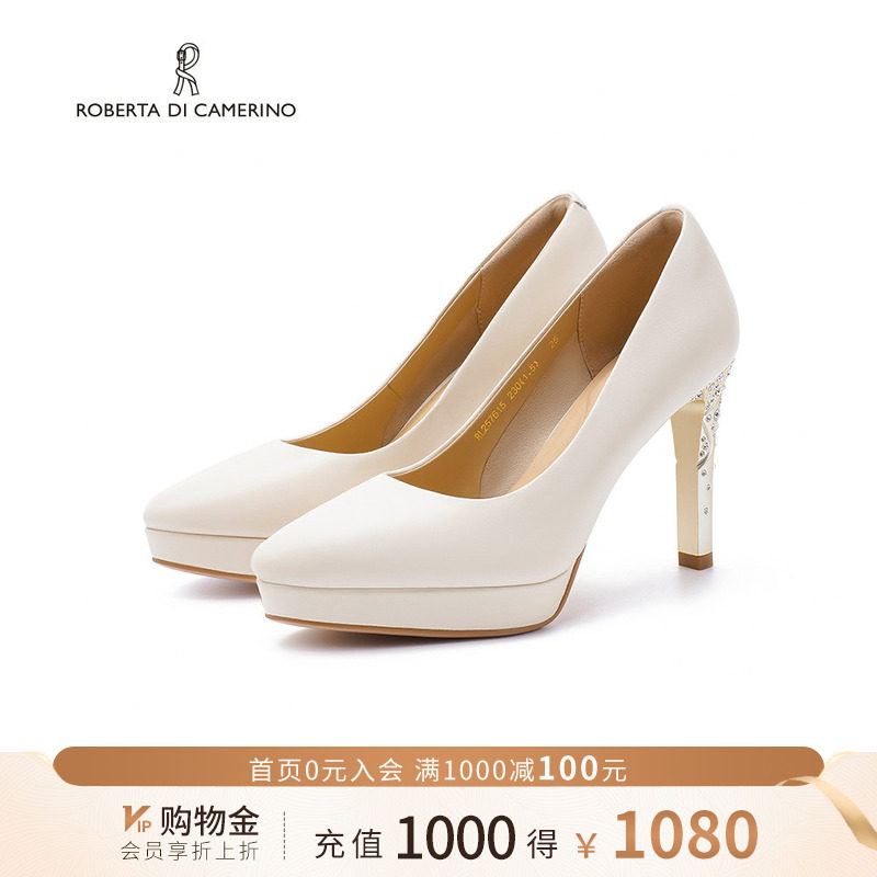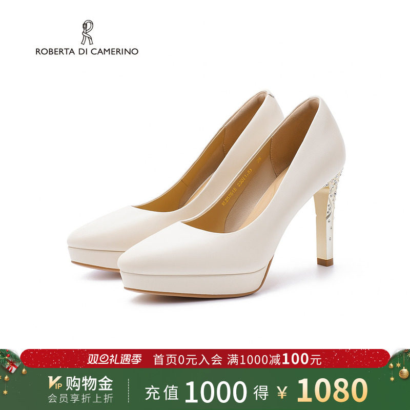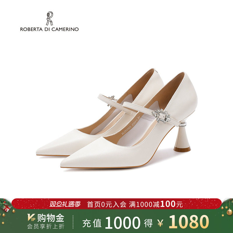 诺贝达浅口单鞋方糖戒指一字带婚礼晚宴百搭法式高跟鞋RL254305