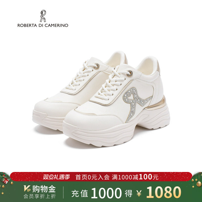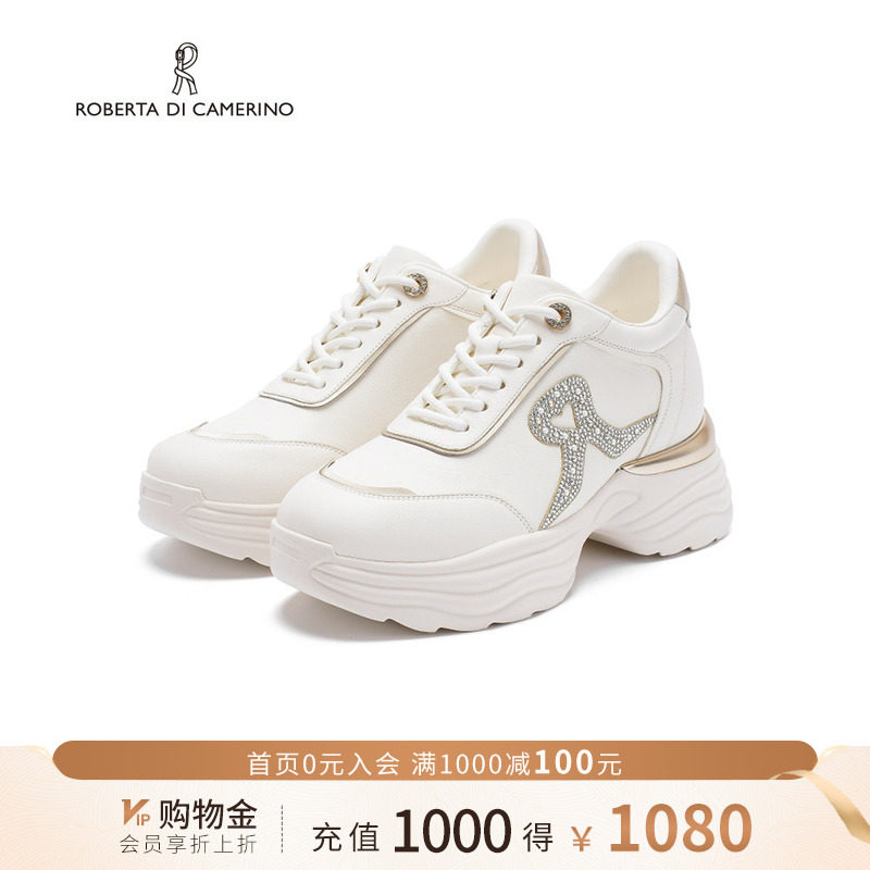 诺贝达新款水钻老爹鞋休闲小白鞋内增高舒适透气运动鞋RCL255908