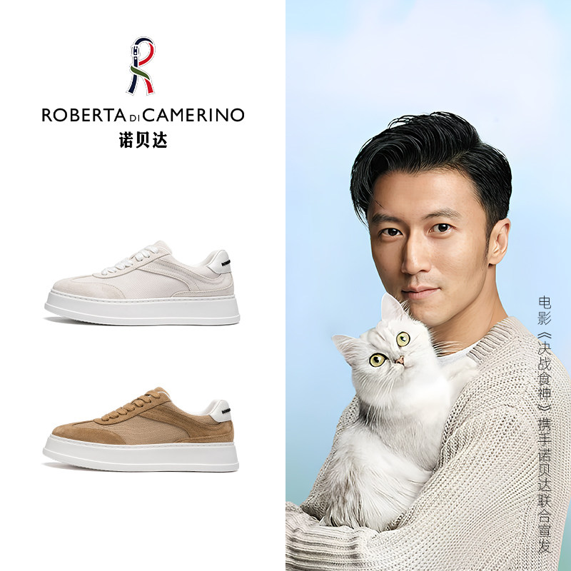 诺贝达2025春夏新款男士日常休闲板鞋真皮发泡轻底透气百搭小白鞋