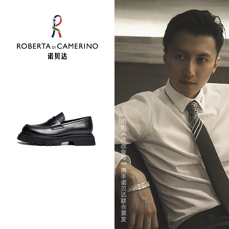 诺贝达2025秋季新款商务休闲皮鞋男士真皮厚底增高百搭软面乐福鞋