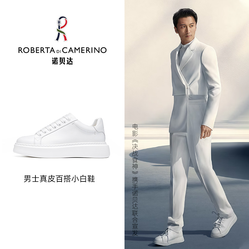 诺贝达男鞋秋冬季男士休闲鞋男进口真皮厚底轻质透气青年小白鞋子
